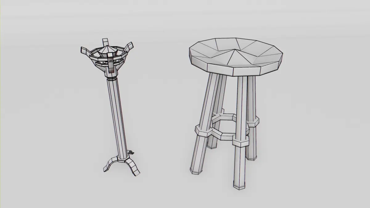 Elevate your 3D projects with this stylized Low-Poly Medieval Torch & Stool Set.