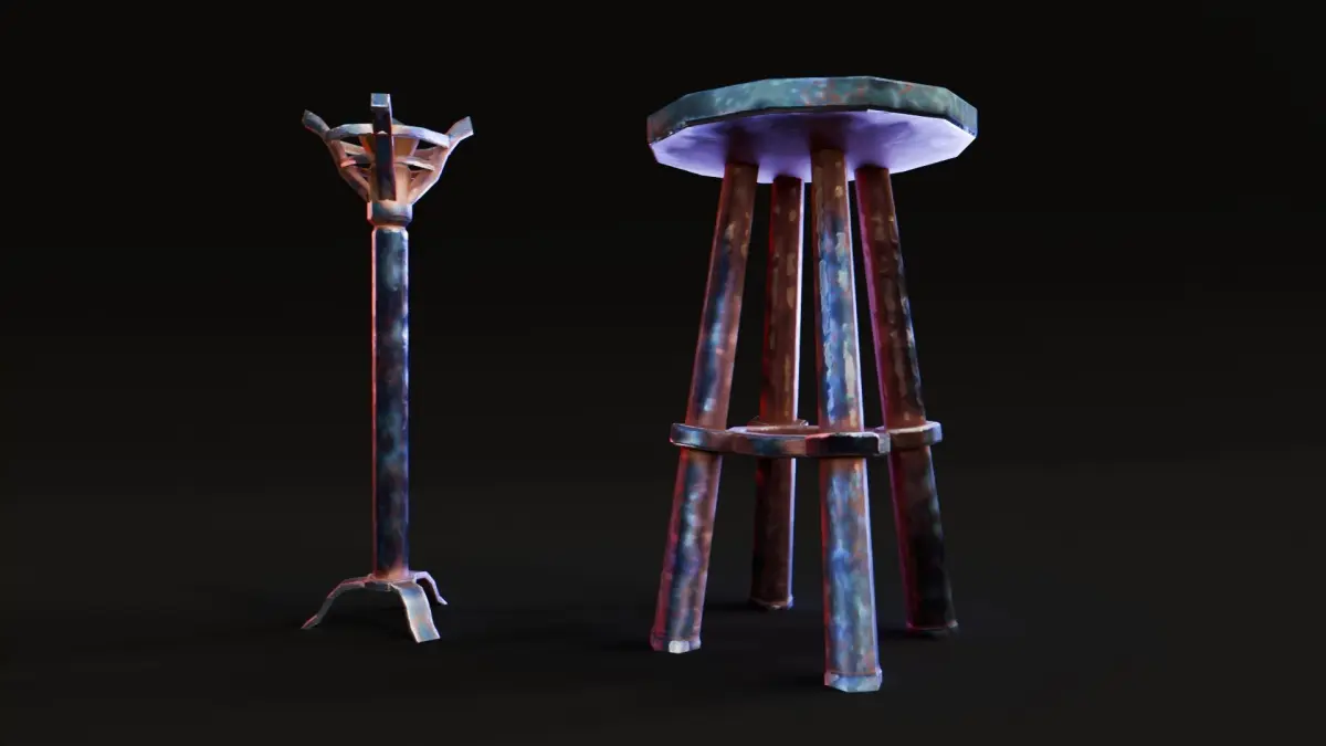 This stylized Low-Poly Medieval Torch & Stool Set is meticulously crafted for optimal performance in game engines and real-time rendering. It combines the power of Blender for modeling, texturing, and rendering, resulting in a visually appealing and functional set of medieval props.