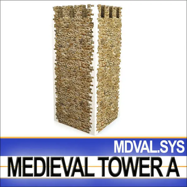 In the package you will find:1- Complete Medieval Tower with Interiors;2- Real Movable Doors and Window Shutters;3- Ladders;4- 16 Arrow Slits for Archers;5- 1 Ground Floor and 4 Floors with Fighting Platform;6- 1 complete Stairway System;7- Wall Texture ready for Displacement;8- 43 Hi-Quality Hi-Def PhotoReal Textures [2100x3200; 1800x780; 1700x1100; 600x1600; 900x900; 580x580];9- Alternate Textures to create different types of elements;10- Real World Scale SmartCgArt Man Reference System with models [C4D, VUE, 3DS, OBJ, DXF].