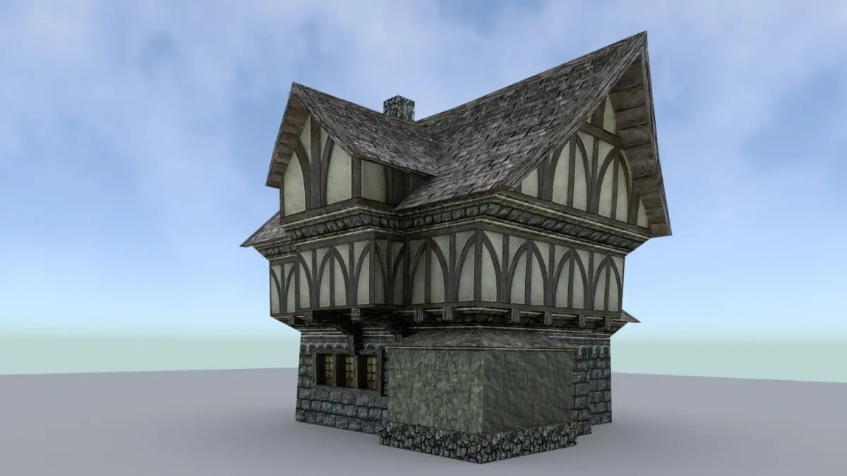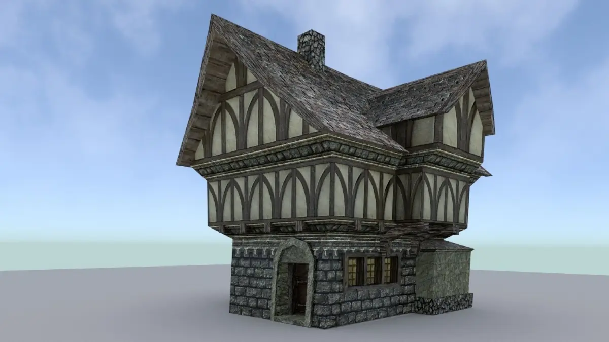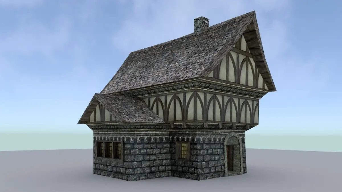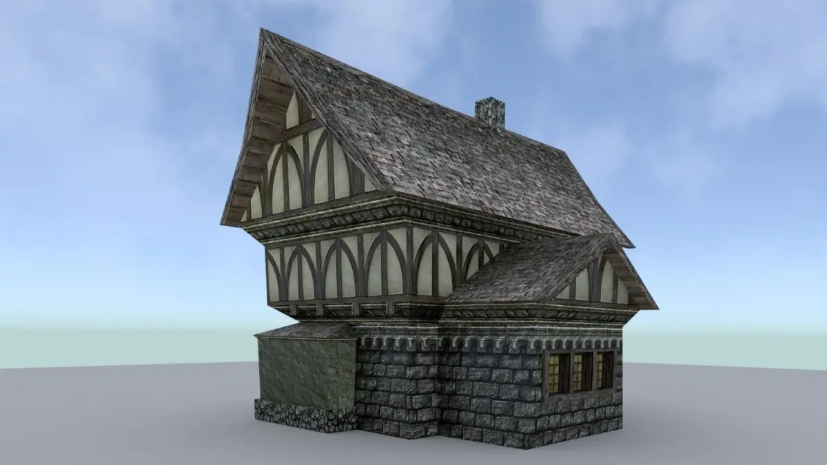 Poly/Verts Count- House 1 867 / 546- House 2 2892 / 1558- House 3 2249 / 1214- Stable 5972 / 3681- Tavern 3662 / 2047- Mayors 5166 / 3013