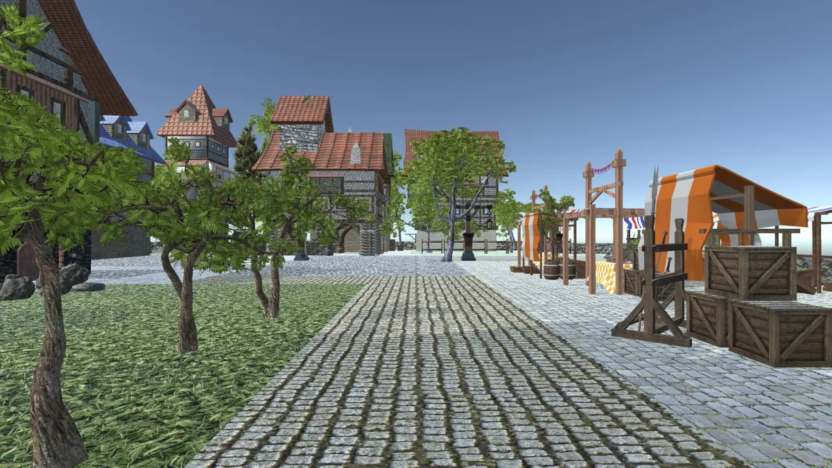 --> 6 modular building assets--> food items trees pack, grass pack (Unity assets store)--> All the models have a separate custom UV & colliders where needed.
