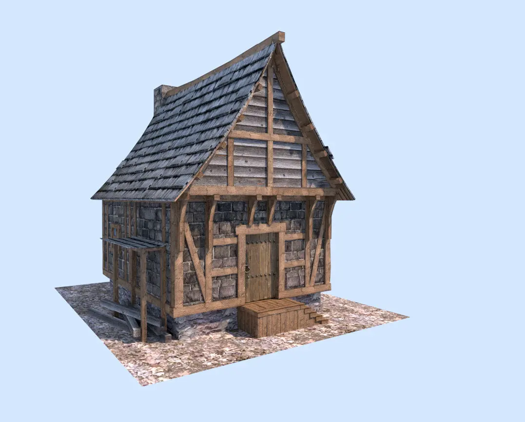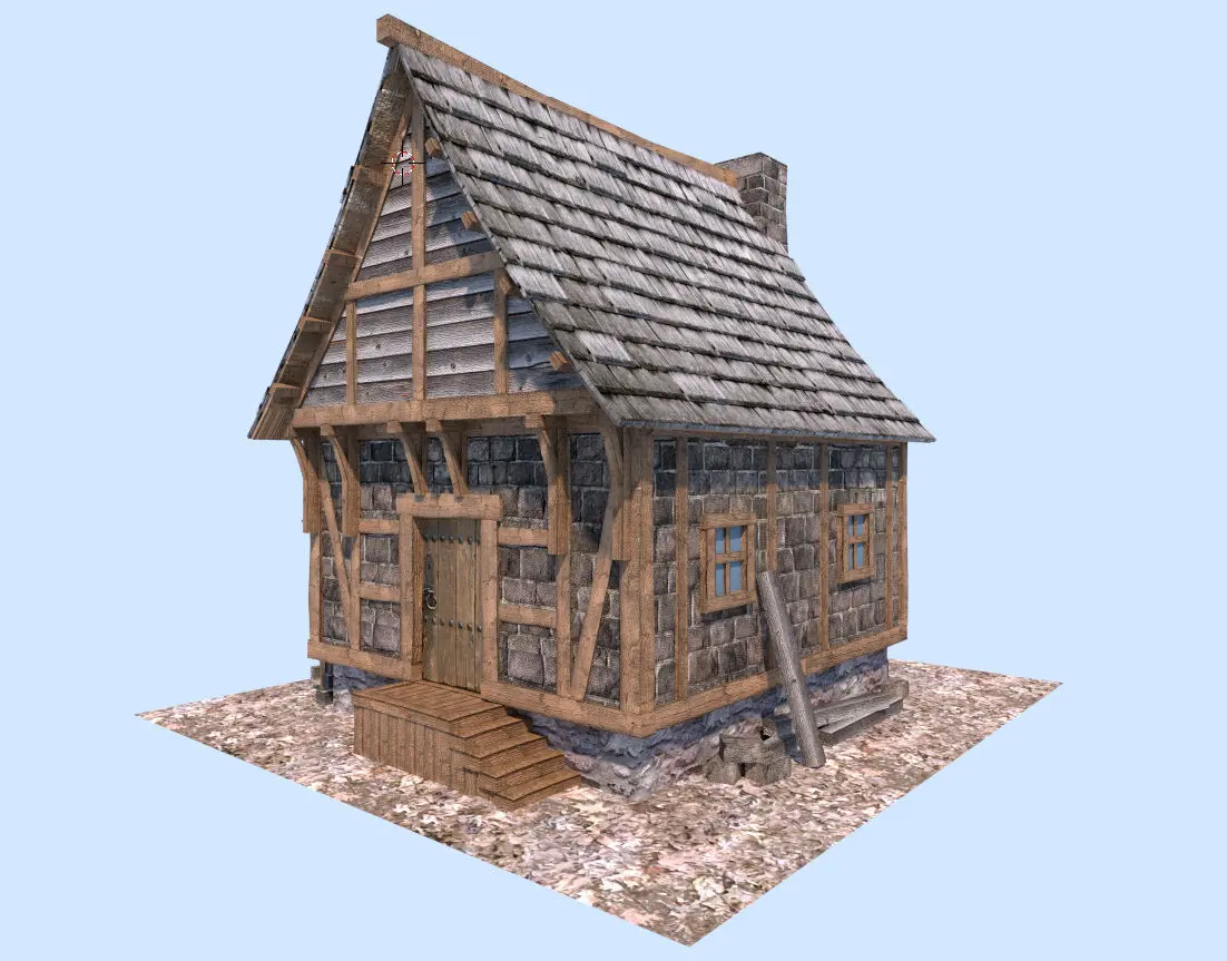 medieval house model, modeled in blender 3D. fully textured and unvrapped.materials included.