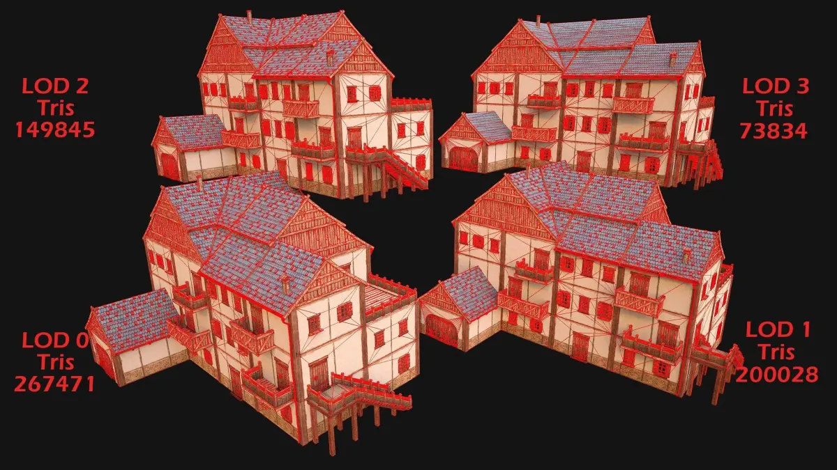 - Edges: 347916(LOD0),306472(LOD1),229652(LOD2),121345(LOD3).