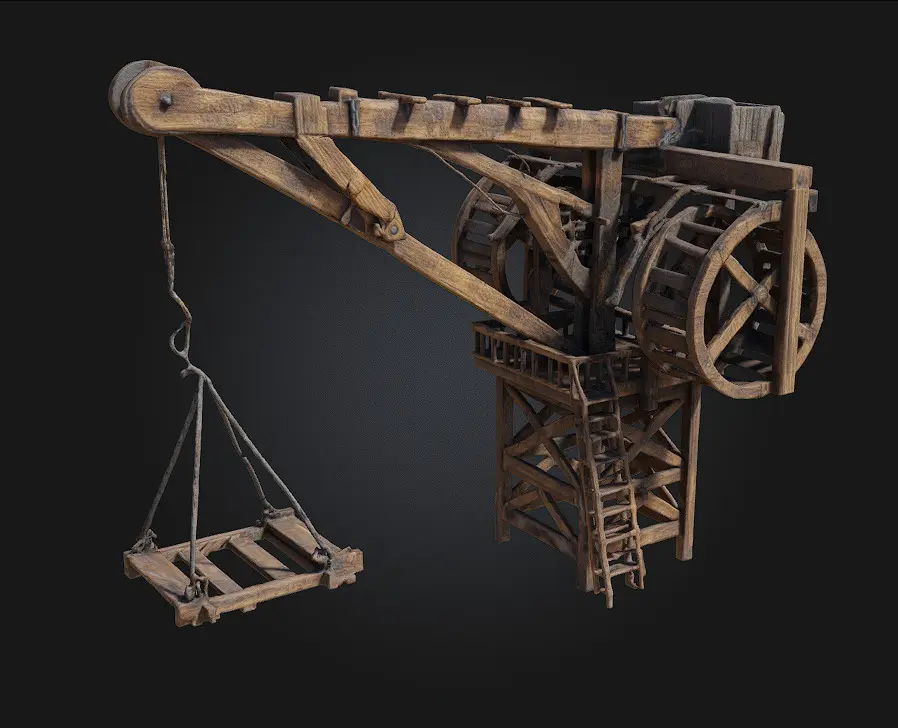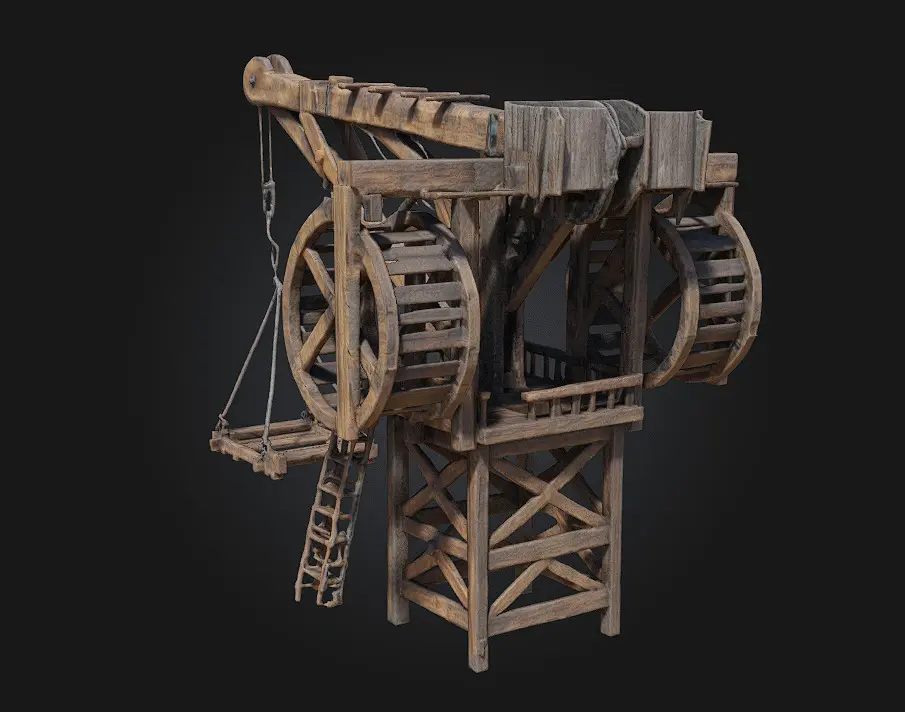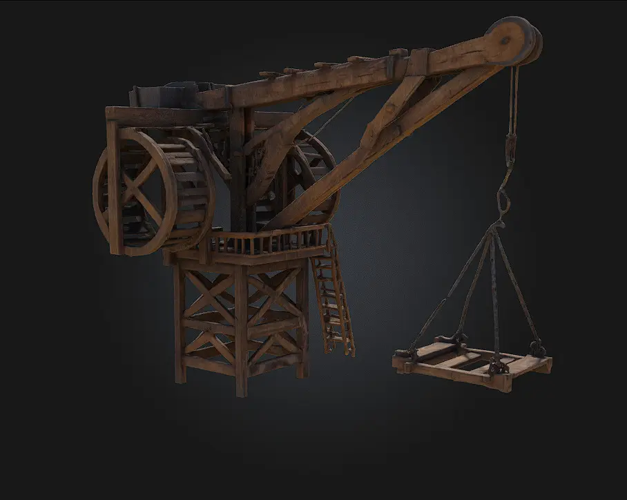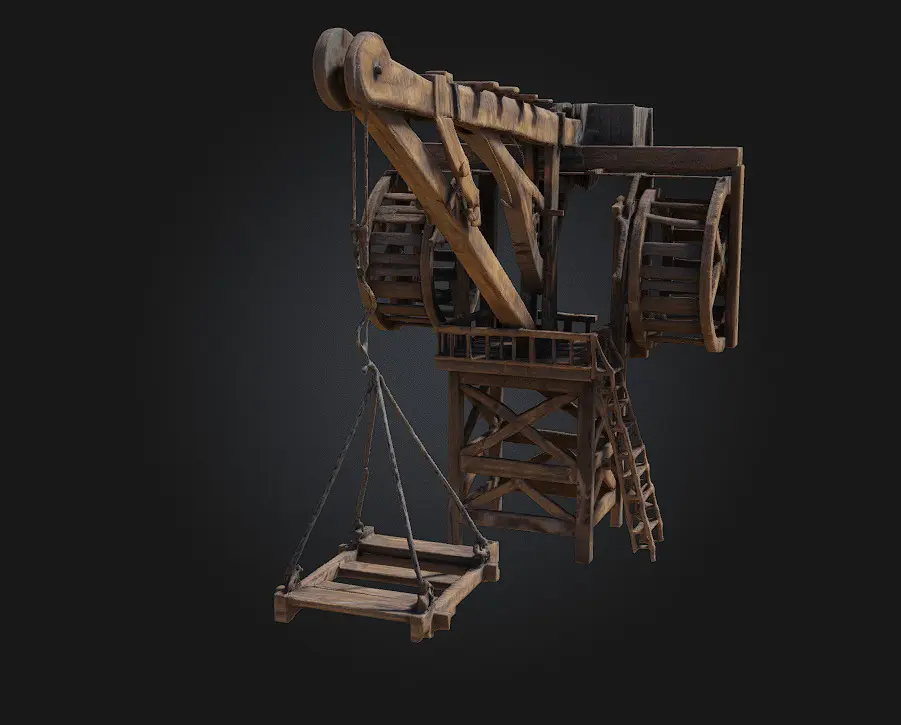 The Medieval Treadwheel Crane model showcases the ingenuity of ancient construction methods. Ideal for castle-building scenes, historical reconstructions, or medieval simulations, it adds mechanical authenticity and visual intrigue to any setting.