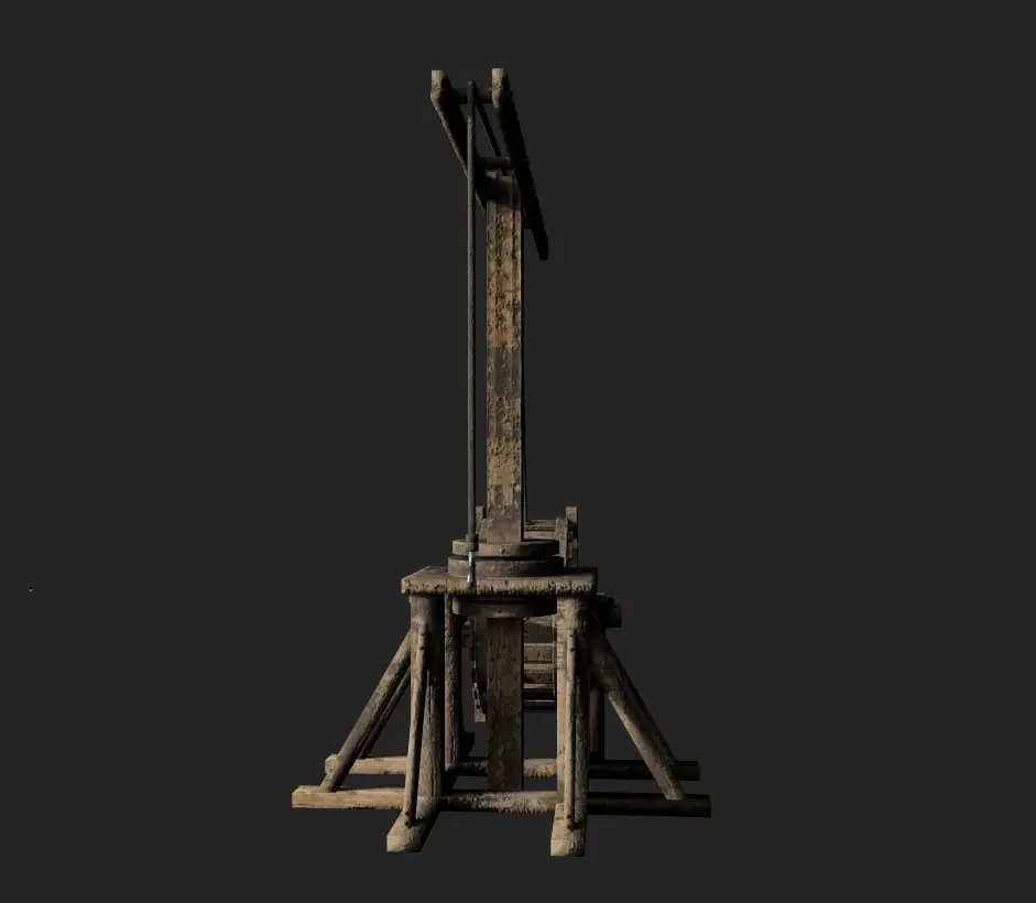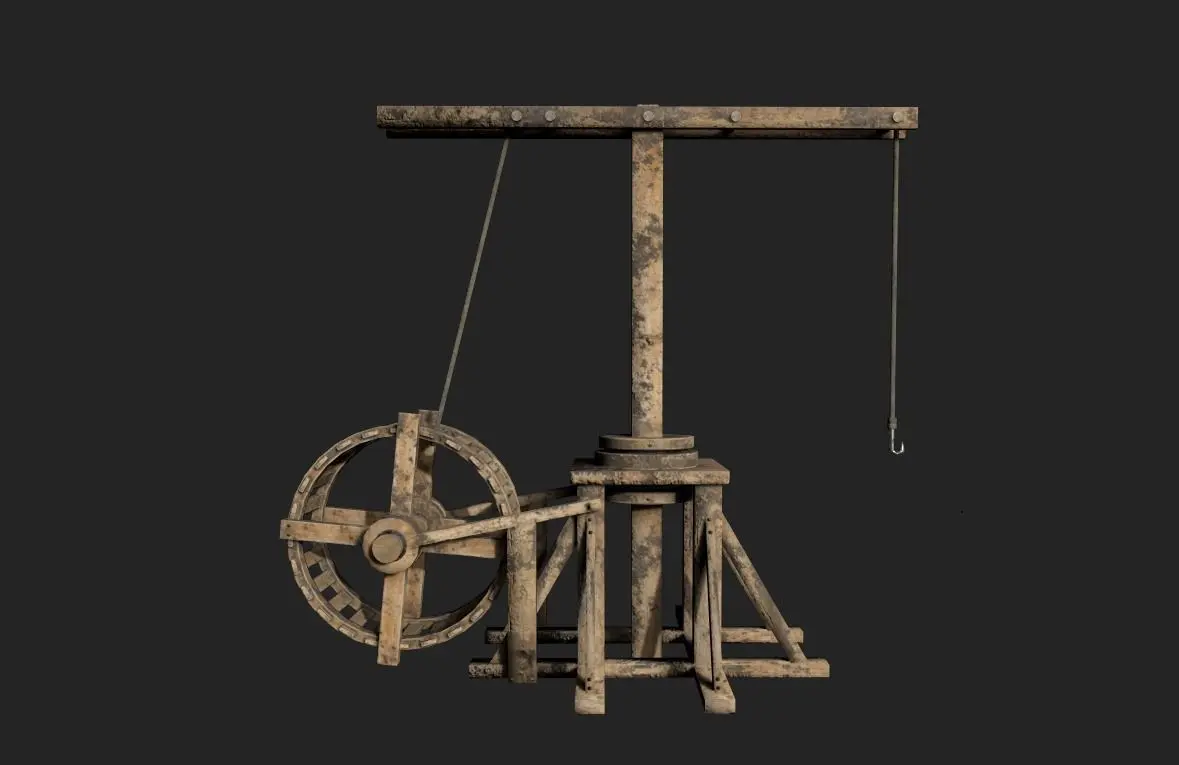 PBR, Game-Ready, Low-Poly, hand-painted, Medieval Treadwheel Crane