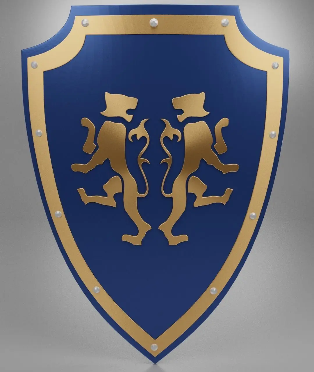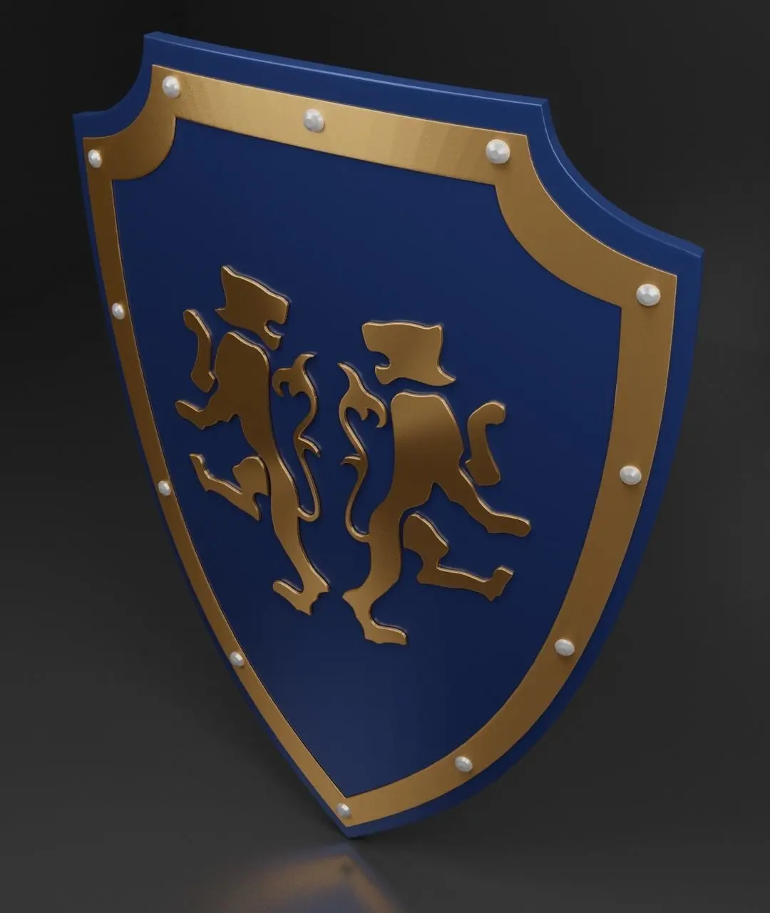 Modelo de Escudo Medieval con emblema de dos Tigres para imprimir 3D
