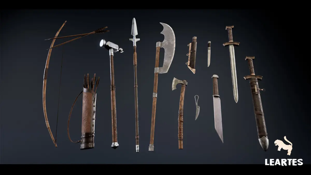 18 Pieces of Medieval / Viking Weapons and Shields Set , Gameready and Optimized , each Shields has up to 3 material variations , big attention to details . Each Assets are Sculpted in Zbursh and Ornament / Zbrush details are baked into normal map for better optimization , Some assets are using same 2K texture space and project size is very low while maintaining high quality .