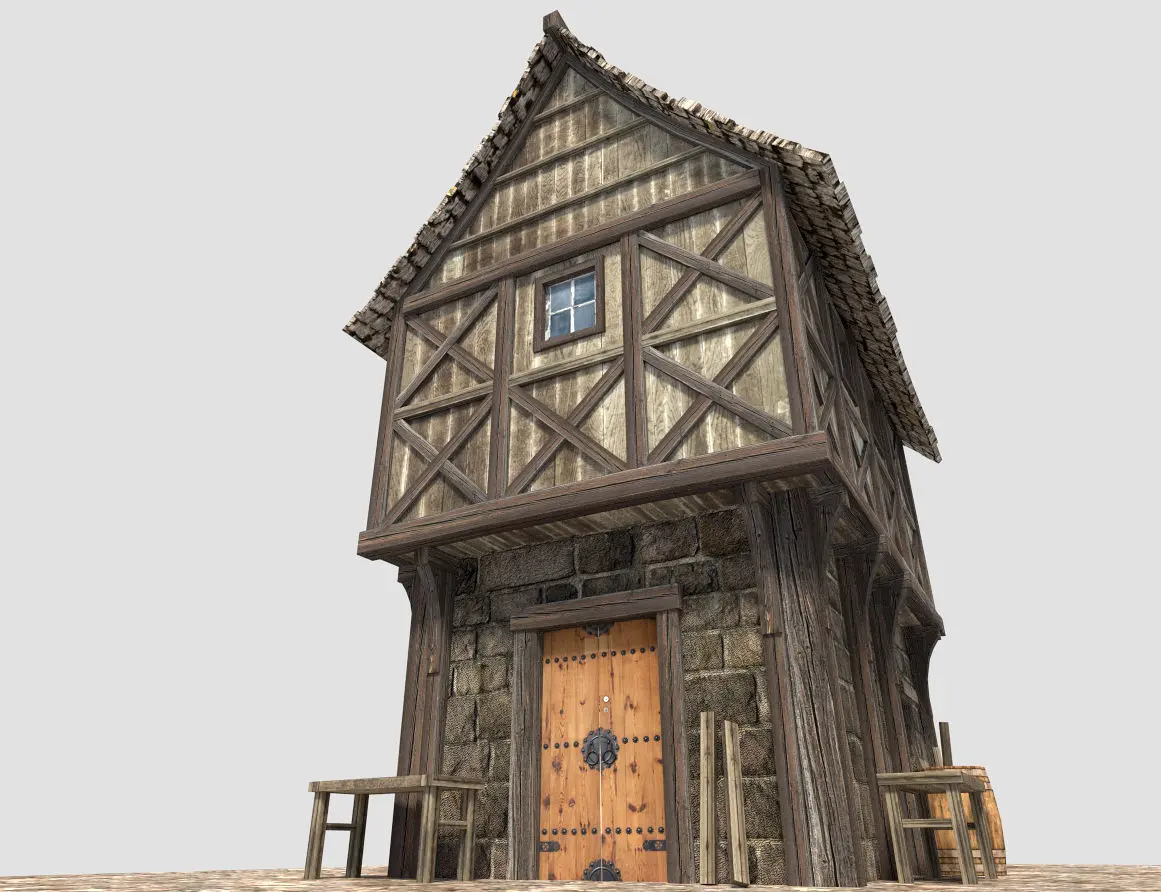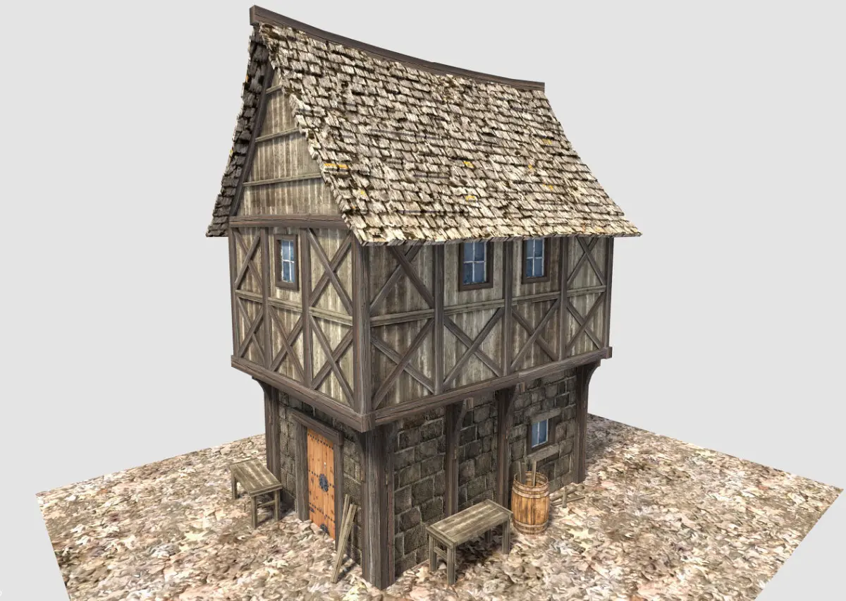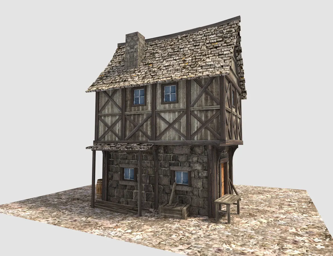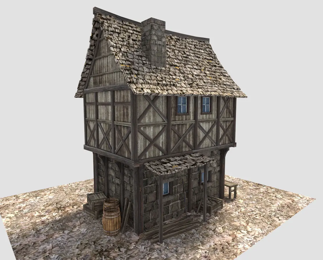 detailed model fo medieval house, modeled in Blender 2.73. very realistic looking building model with all details. fully textured and UV mapped. materials included, HQ textures.