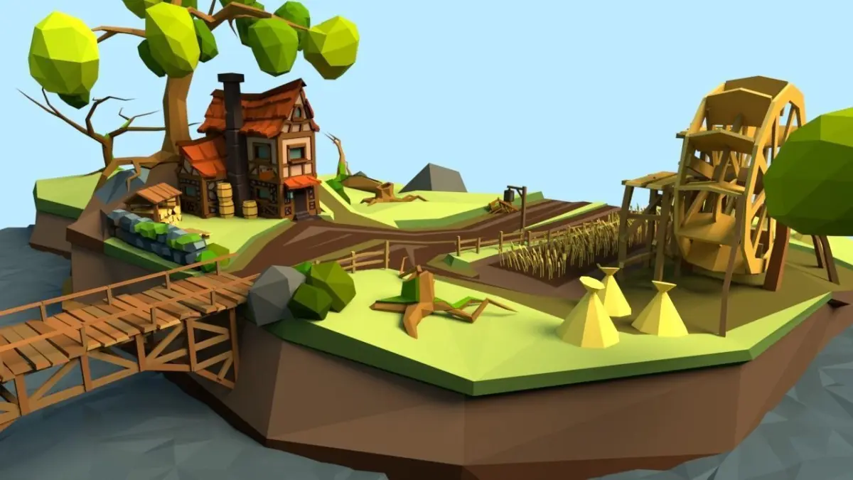 Model information :houses, buildings, constructions, equipments, terrain, nature... all composition:verts: 49 828faces: 59 382tris: 93 501files: .blend, .fbx, .objtexture in png formattexture size: terrain 1024x1024, others 64x64overlapping UV