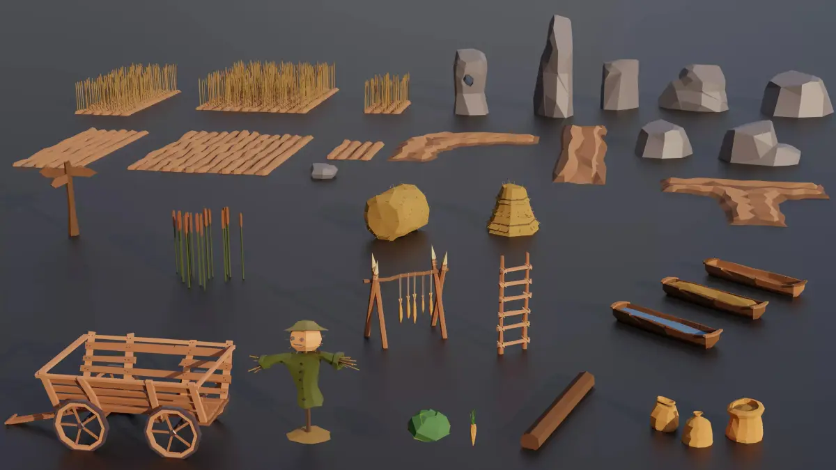 Low Poly - RG Medival VillageAn Epic Low Poly asset pack of trees, buildings, rocks, tools, weapons, props, and others Environment assets to create a medievalvillage themed polygonal style game. You no longer need to browse the store for individual 3d models, only with this one pack alone you can build an amazing levels UNITY/FBX/OBJ/BLENDUnity Asset Store: https://assetstore.unity.com/packages/3d/environments/medieval-village-megapack-low-poly-rg-208793