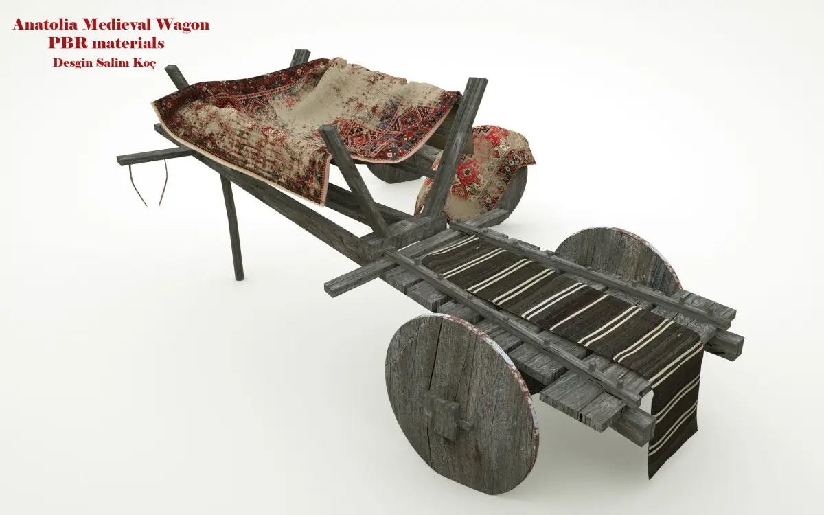 historywooden old carold Anatolian carpetwheel separately.on the carpetpbr material