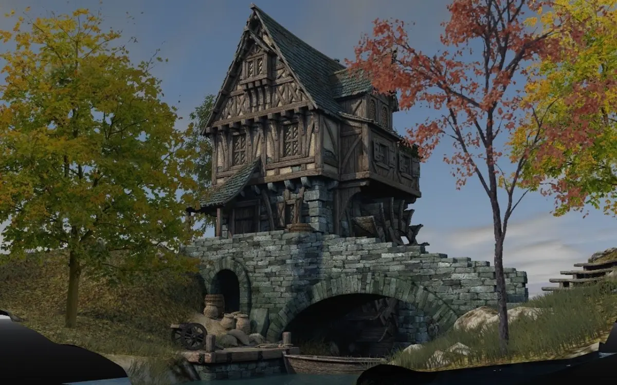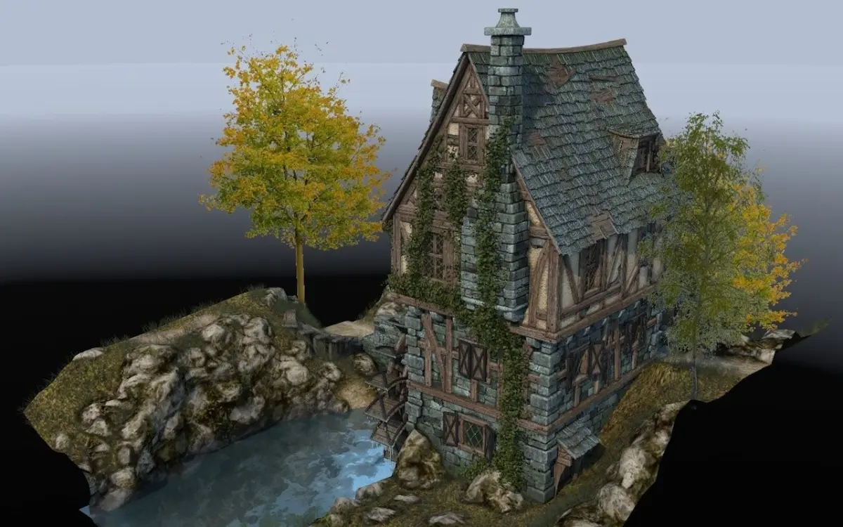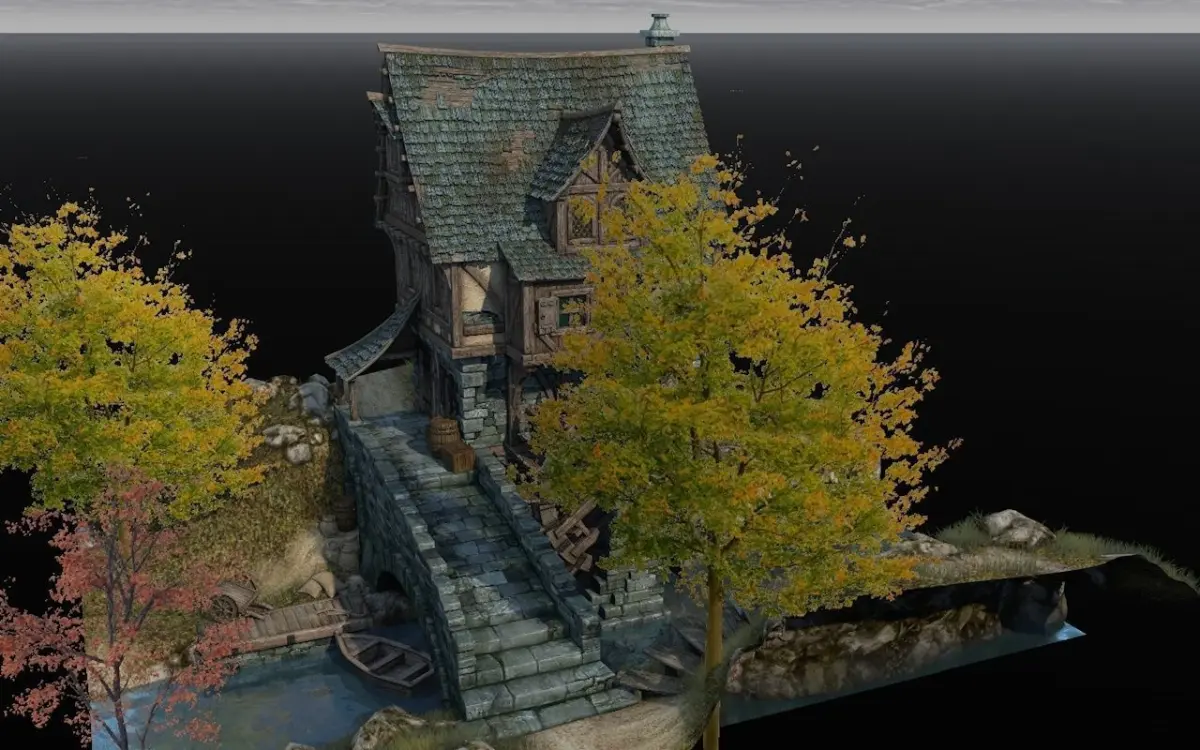 Medieval water mill with a fragment of the surroundings. At the mill there is a bridge, a marina, a small river, goods and a boat. The model is also in the night version, i.e. you can ignite the internal light. The model was made in Cinema 4D.