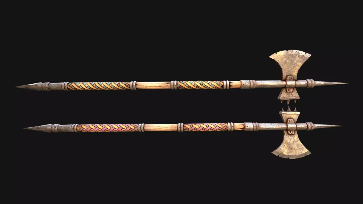 Game ready model .The model contains lods, detailed information on the images.Stylized and detailed Medieval Wooden Halberd fully textured, sculpted and rendered with Physical based rendering (PBR) - Shown images have been rendered in Marmoset Toolbag .The model has two color options.