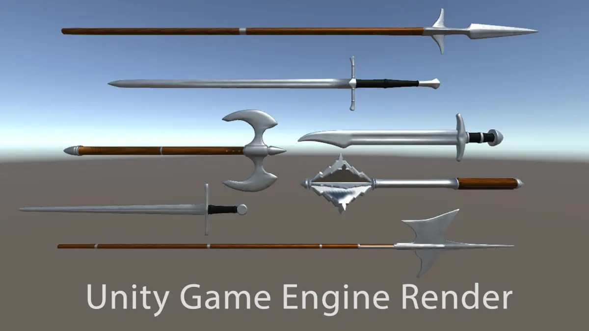 7 game ready weapons. Made in Blender, rendered with Cycles and tested in Unity game engine.You can buy each of these weapons individually for $15 each plus you can get the battle axe for free, just visit my store.