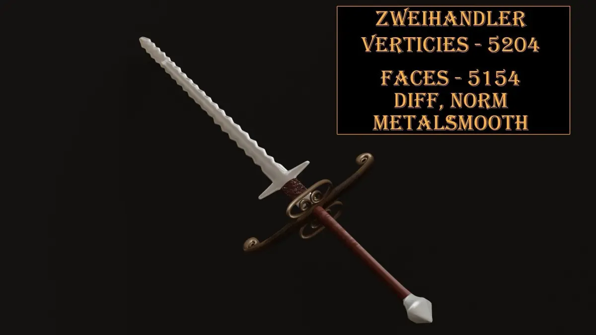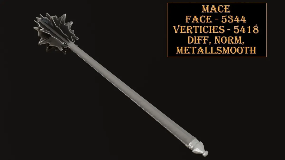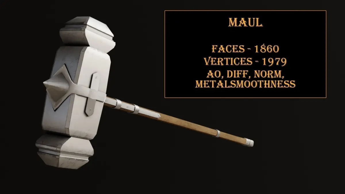 This pack contains 10 different models of weapons with textures which including:Flamberge Zweihander ( 5204 vert. Diffuse, normal, metallic 2048x2048 )Maul ( 1979 vert. Diffuse, normal, metallic, AO 2048x2048 )Halberd ( 1788 vert. Diffuse, normal, metallic 2048x2048 )Axe ( 1194 vert. Diffuse, normal, metallic 2048x2048 )Mace( 1979 vert. Diffuse, normal, metallic, AO 2048x2048 )Wooden sword ( 102 vert. Diffuse, normal, metallic 2048x2048 )Longsword ( 773 vert. Diffuse, normal, metallic 2048x2048 )Bastard sword ( 502 vert. Diffuse, normal, metallic 2048x2048 )Dagger ( 735 vert. Diffuse, normal, metallic, AO 2048x2048 )Spear ( 563 vert. Diffuse, normal, metallic 2048x2048 )
