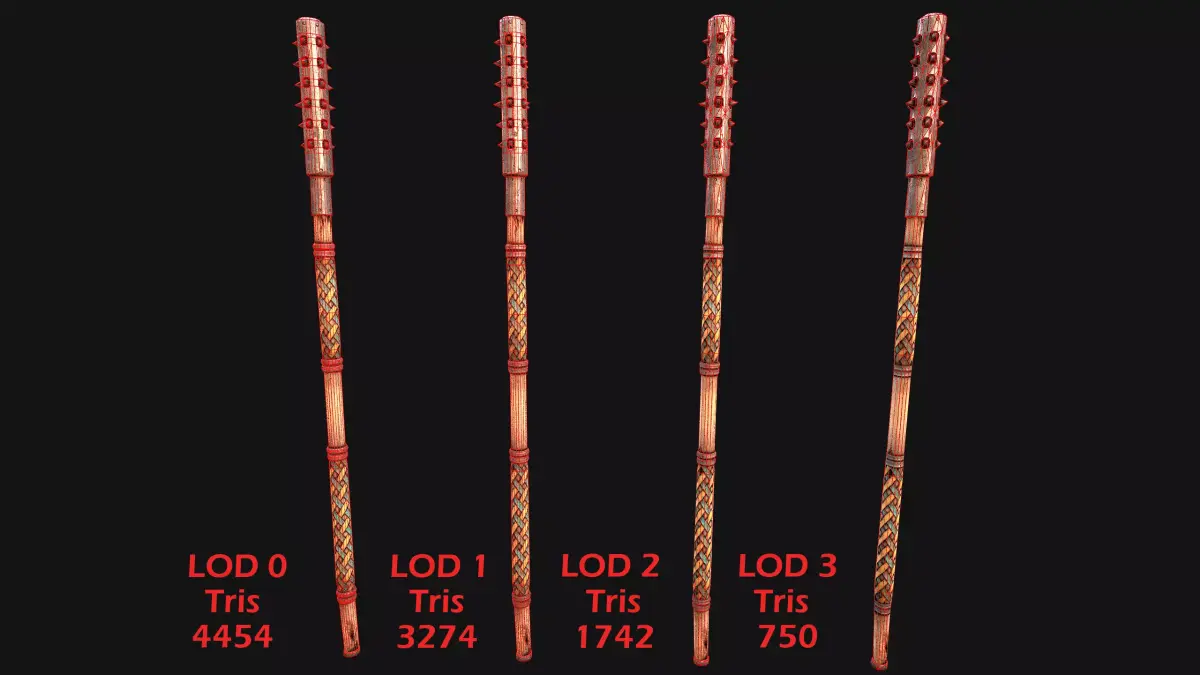 Game ready model .The model contains lods, detailed information on the images.Stylized and detailed Medieval Polearms Crushing Mace fully textured, sculpted and rendered with Physical based rendering (PBR) - Shown images have been rendered in Marmoset Toolbag .The model has two color options.