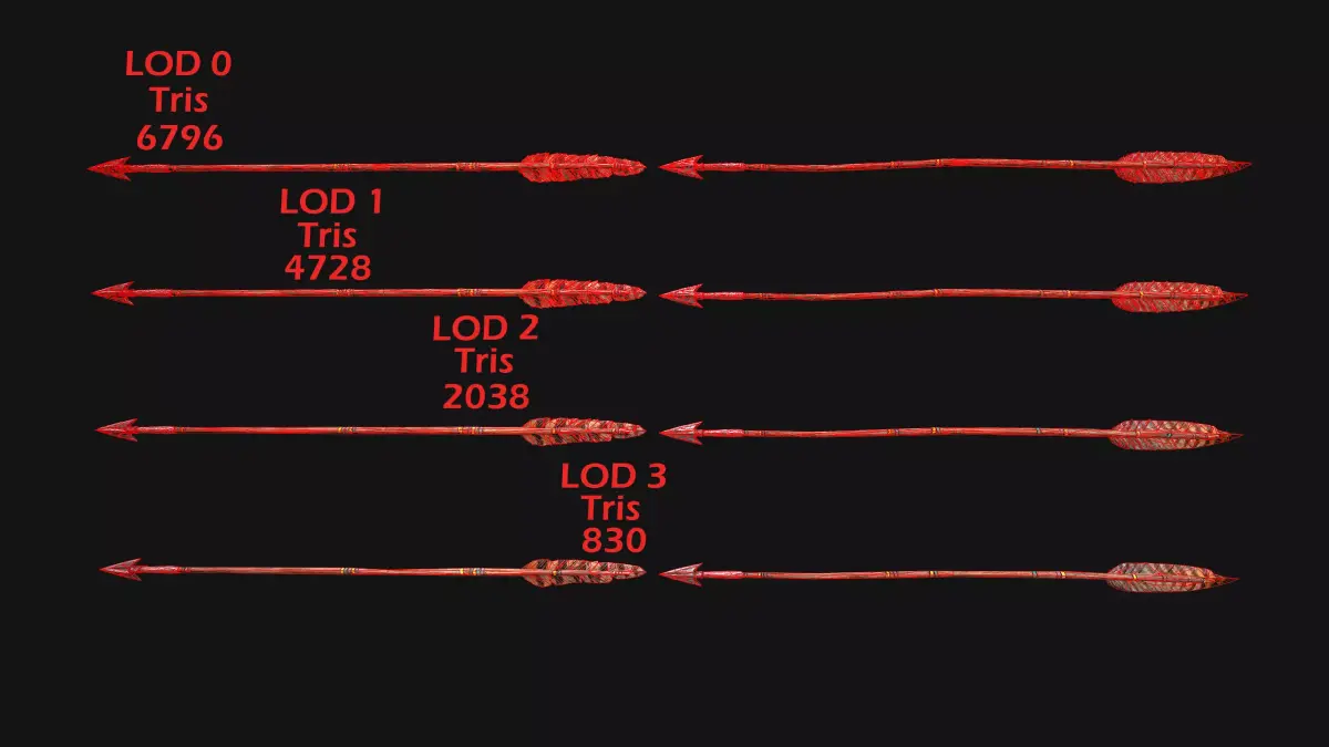 - Tris: 6796(LOD0),4728(LOD1),2038(LOD2),830(LOD3).
