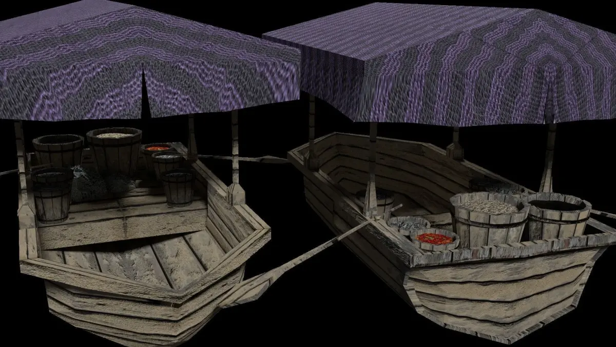 Comes with 2 Docks 2 Tile Meshes with 3 Different Cobble Stone Floor Textures 2 Different Merchant Boats and a Regular Row Boat All Models are Separate Meshes Designed for Game Development