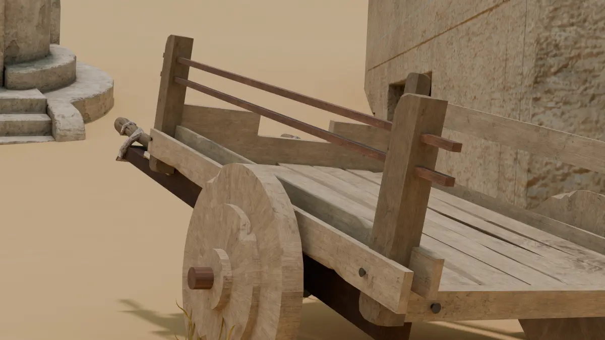 Bring your medieval or fantasy scenes to life with this realistic Medieval Wooden Cart 3D model, crafted with historical accuracy and fine detail in Blender. This asset is ideal for use in game environments, cinematic renders, and animation projects.The cart features: Hand-carved wooden planks with aged textures and worn edges, showcasing the wear and tear of long journeys.Iron reinforcements and bolts, giving the cart structural integrity and a period-authentic feel.A functional wheel system with detailed spokes and hub caps.UV-unwrapped and fully textured using PBR maps .