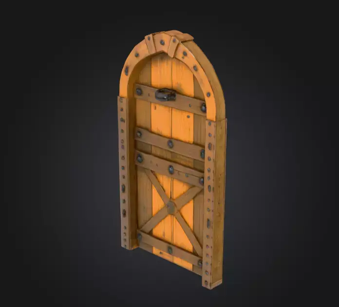 The Medieval Wooden Door is a game-ready 3D model designed to authentically represent European doors from the 12th–15th century while maintaining optimized performance for GameGuru and similar engines. Crafted from sturdy oak panels, the door is reinforced with iron bands and rivets, showcasing a rugged medieval aesthetic that is both practical and visually immersive.