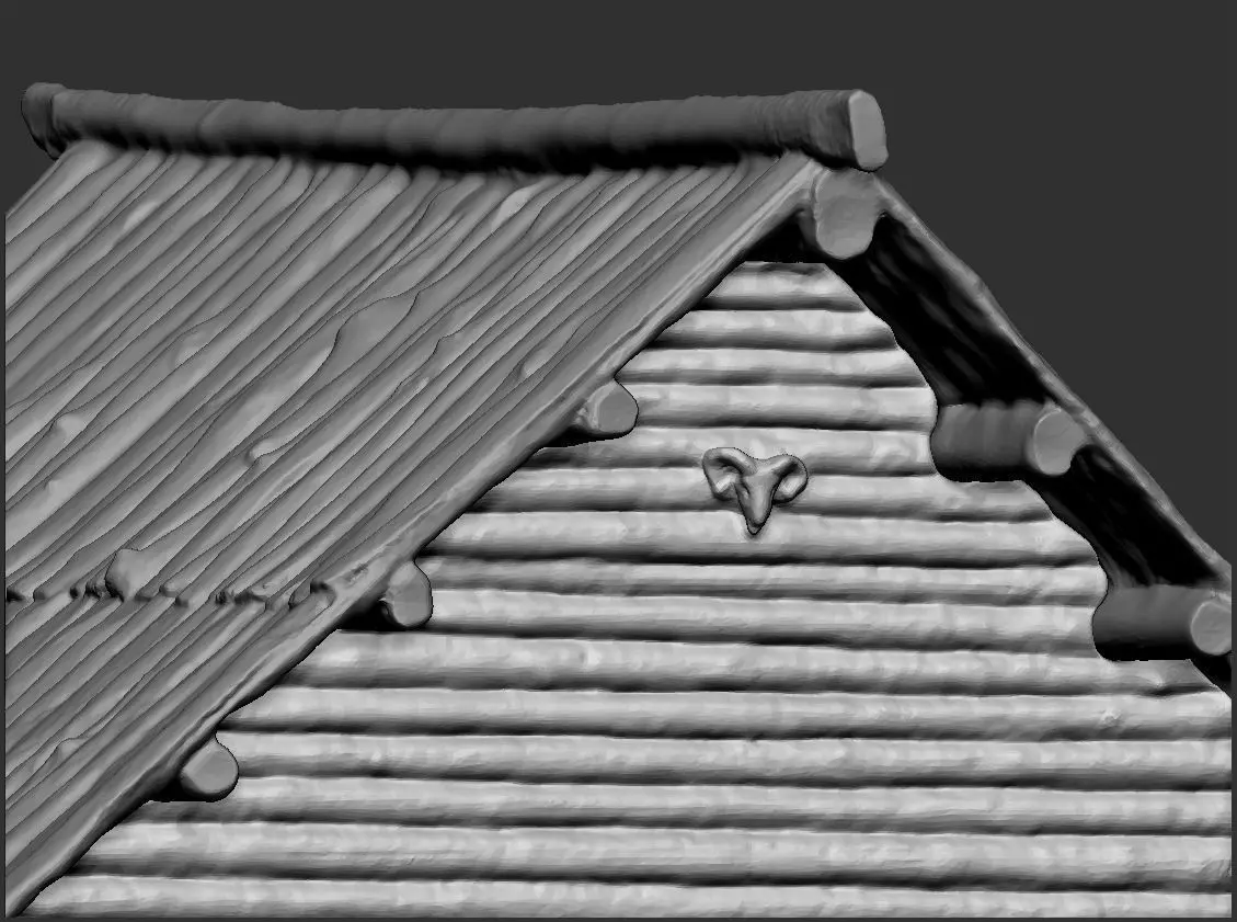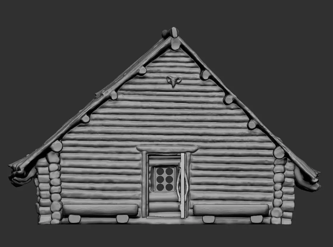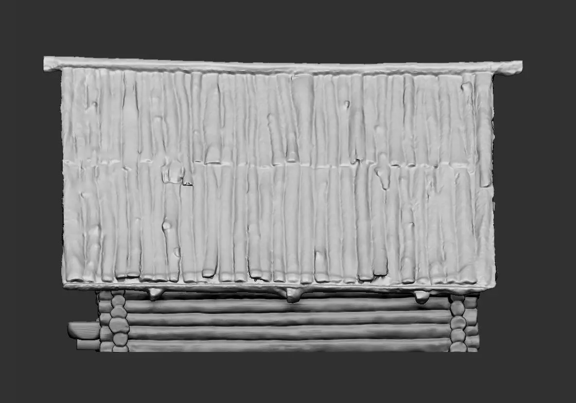 The medieval wooden house Lamb's Head consists of several parts - a roof - a house - a clay floor - a door - a pin for a door - a bench.