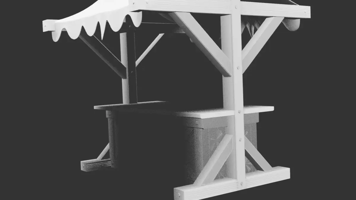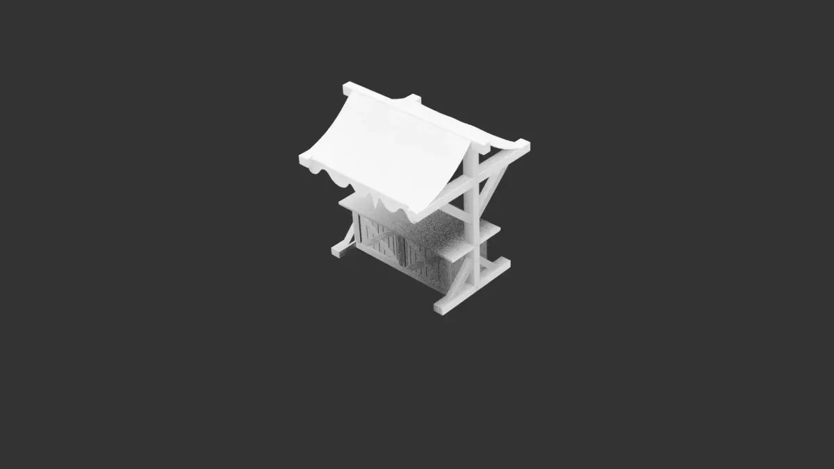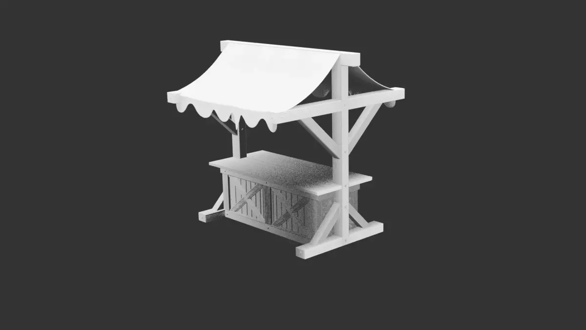 This model captures the essence of a medieval marketplace through a detailed wooden stall structure consisting of a sturdy wooden frame, supporting beams, a sloped canopy, and a table surface. Designed as a static prop for tabletop scenes or dioramas, the model focuses on structural storytelling rather than real-world functionality. The construction includes weathered wood planks, subtle deformation, and irregular edges that reflect prolonged use, giving the stall an authentic historical tone. The model is intentionally simple to print, avoiding extremely thin surfaces while maintaining visual interest. Without textures, the model is suitable for decorative painting or advanced finishing techniques to simulate wood aging, grime, moss, or fabric patterns on the canopy. Ideal for fantasy games, medieval villages, merchant environments, or story-driven scenery, the stall works as a centerpiece or as part of larger scene layouts. Its scale can be adjusted for various miniature systems without weakening structure, and the flat base ensures compatibility with most printing setups. The model is static, contains no textures, and is fully optimized for 3D print workflows.