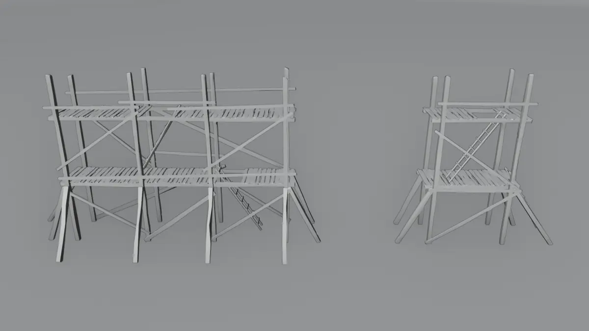 This wooden scaffolding is a great addition to any construction scene from before/during the industrial revolution. The mesh is made to look great in any time period. The mesh is also seperted into dfferent wooden pieces making it easy to kitbash together you're own scaffolding sets depending on the size you need. The model is viewable from all angles and distances. as well as having water tight meshes. This includes both a 4K and 2K texture set for even more control.