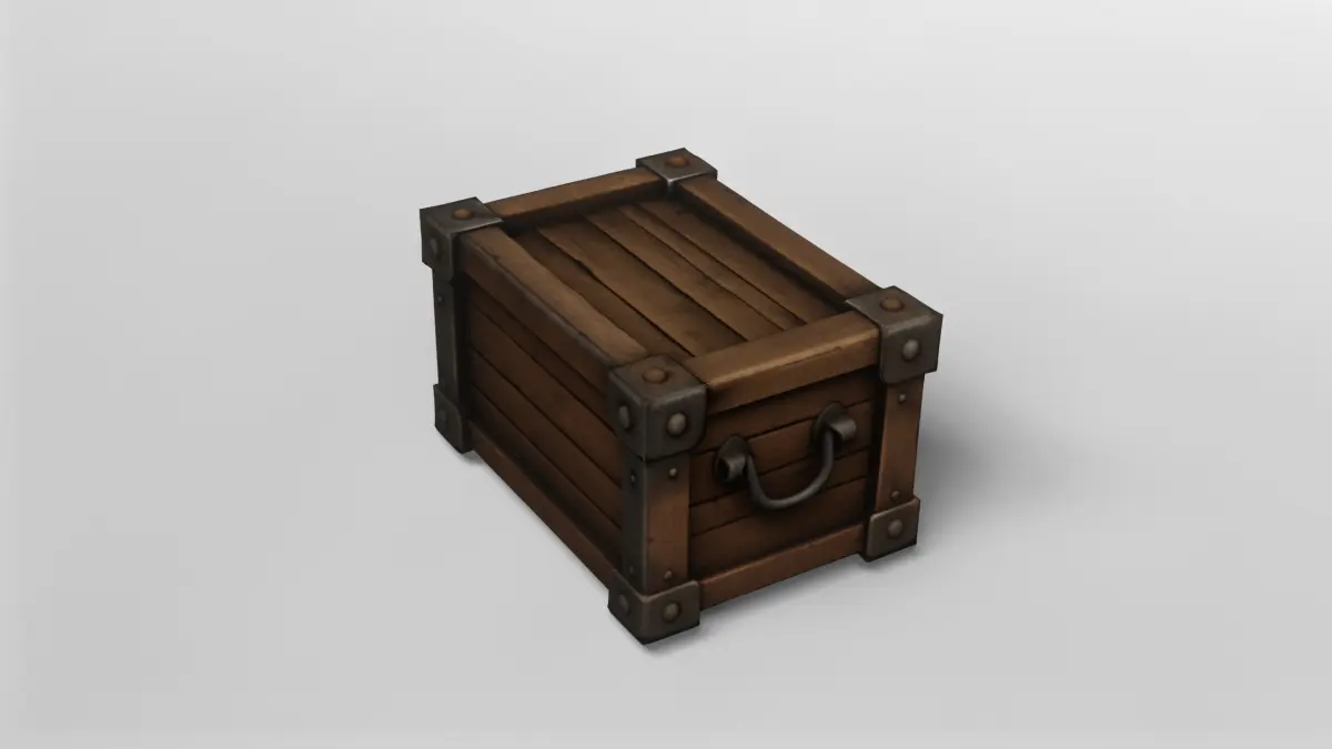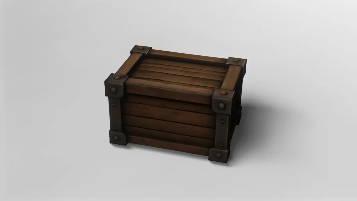 This 3D model depicts a robust medieval wooden storage crate, perfect for adding authenticity to any historical or fantasy-themed environment. The crate is constructed from weathered wooden planks, each rendered with realistic grain and texture, giving it a well-used, rugged appearance. Reinforced with sturdy metal brackets and rivets at each corner, the crate exudes durability and old-world craftsmanship. The metal handles on the sides provide both aesthetic appeal and practical detail, making the crate suitable for interactive game elements or set dressing.The model is meticulously textured, with high-resolution maps that capture the nuances of aged wood and slightly corroded metal. The wood features subtle cracks and color variations, while the metal components display signs of wear, ensuring the crate fits seamlessly into both high-fantasy and realistic medieval settings. The attention to detail makes this asset ideal for close-up renders as well as background props in larger scenes.This crate is downloadable in the versatile gmb format, ensuring compatibility with a wide range of 3D applications and engines. The texture file is included, allowing for immediate use or further customization to match your project's specific needs. Whether used for games, animations, or visualizations, the included textures provide a lifelike finish right out of the box.For added flexibility, the model is also available in fbx format, making it easy to import into most modern 3D software and game engines. The clean topology and optimized mesh ensure smooth performance, even in demanding real-time environments. This medieval wooden storage crate is an essential asset for any scene requiring detailed, historically-inspired props.
