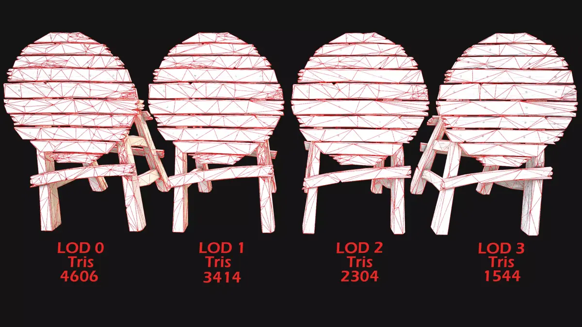 - Edges: 6909(LOD0),5121(LOD1),3458(LOD2),2316(LOD3).