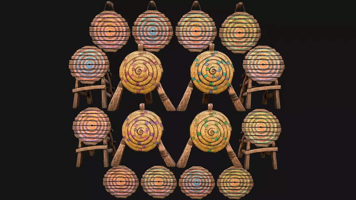 Game ready models .The models contains lods, detailed information on the images.Stylized and detailed Medieval Target pack fully textured, sculpted and rendered with Physical based rendering (PBR) - Shown images have been rendered in Marmoset Toolbag .The set contains: Target, target on a rope, target on a wooden stand ,Straw Target .