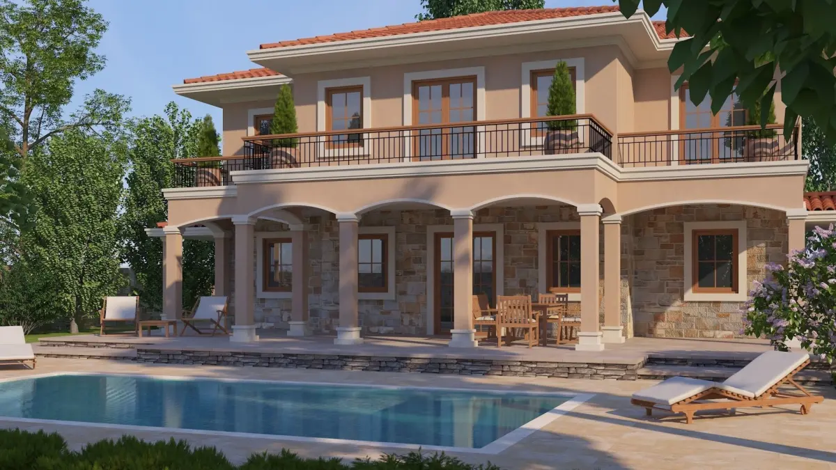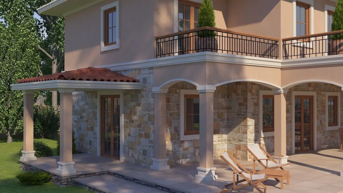 The model is designed and modeled with 3ds Max , rendered with vray 5.The model is a two storage villa building with outdoor furniture and landscape with plants. It is not just a 3d model, it's an applicable architectural project.