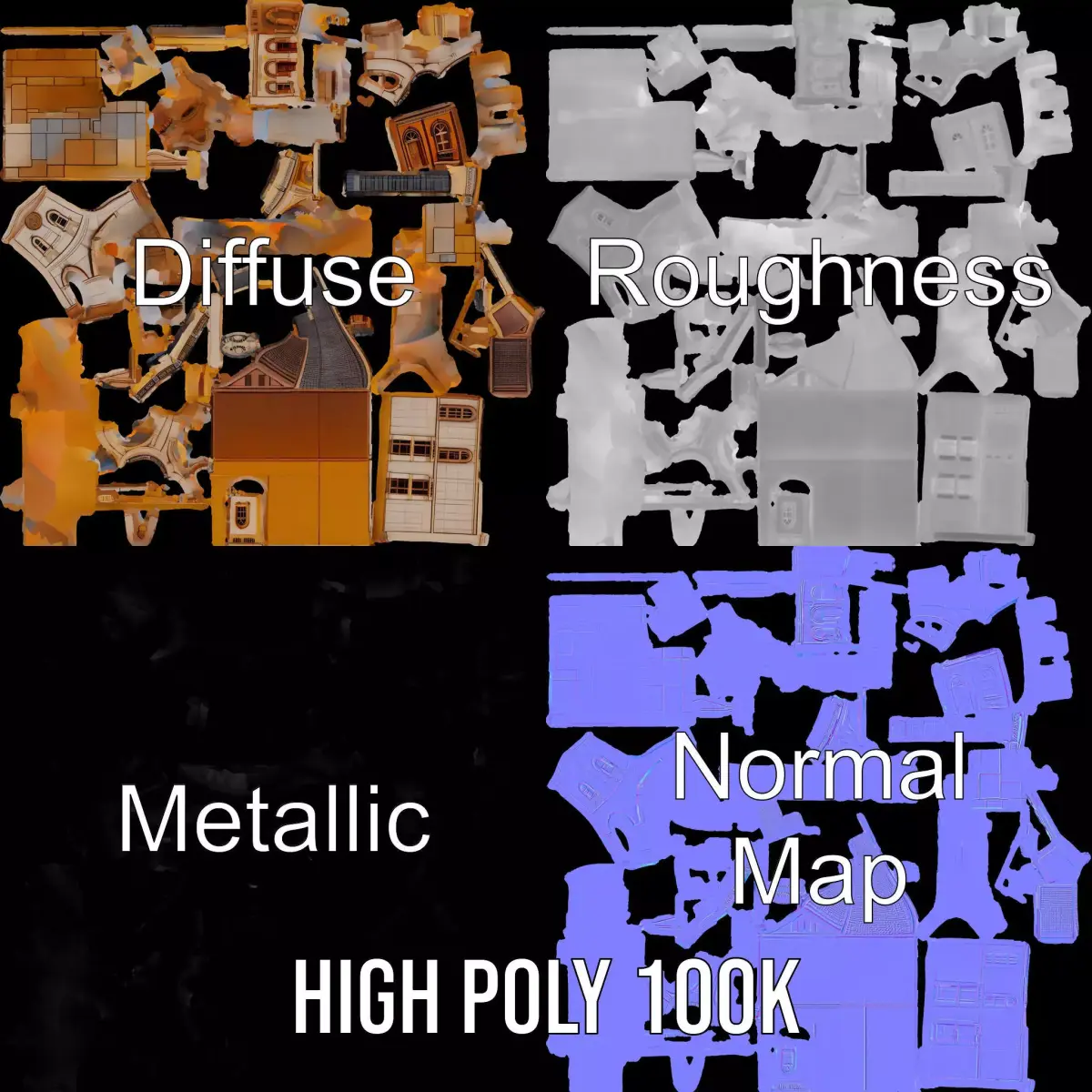 The model's textures are PBR, Diffuse, NormalMap, and reflection/roughness/metallic, suitable for any modern rendering engine. All models are accurately unwrapped and have no overlapping UVs. All textures are 4096*4096 in size.