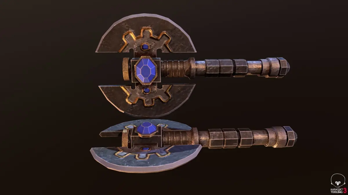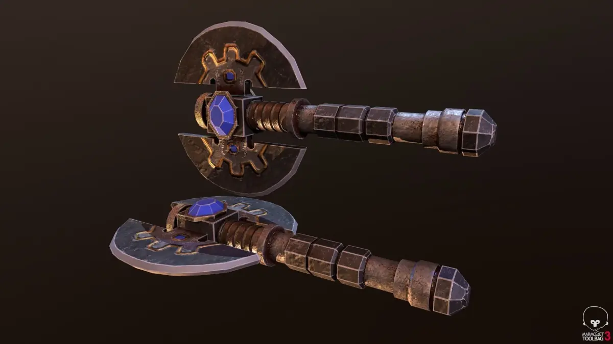 A Medium Dwarf Axe inspired by Skyrim, Lord of the Rings and Game Of Thrones Artworks ready for a Game Engine Unreal or Unity it has 1063 Verts 920 Faces and 1784 Tris I included the OBJ and FBX the textures are PBR and are Albedo, Metallic, Roughness and Normal Maps the size are 2048 x 2048 If you need 3D Game Assets or STL files I can do commission works.