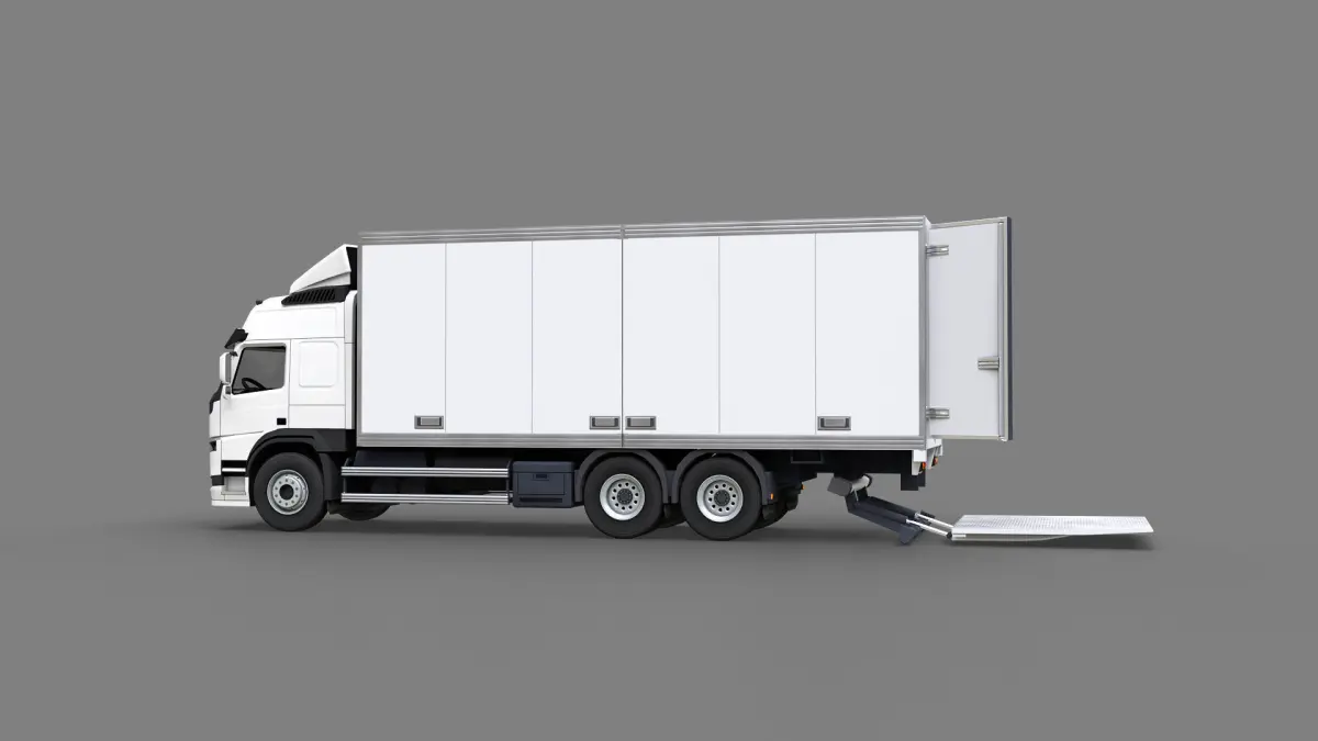 PBR low-poly 3D model of Medium Size Box Truck. The interior part is also modeled and textured but with much less detail.