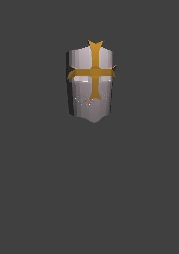 Medival crusader helmet with golden cross in the front and point-holes to breath. The model is perfect for §D and 2D games, props and much other Uses in your projects.