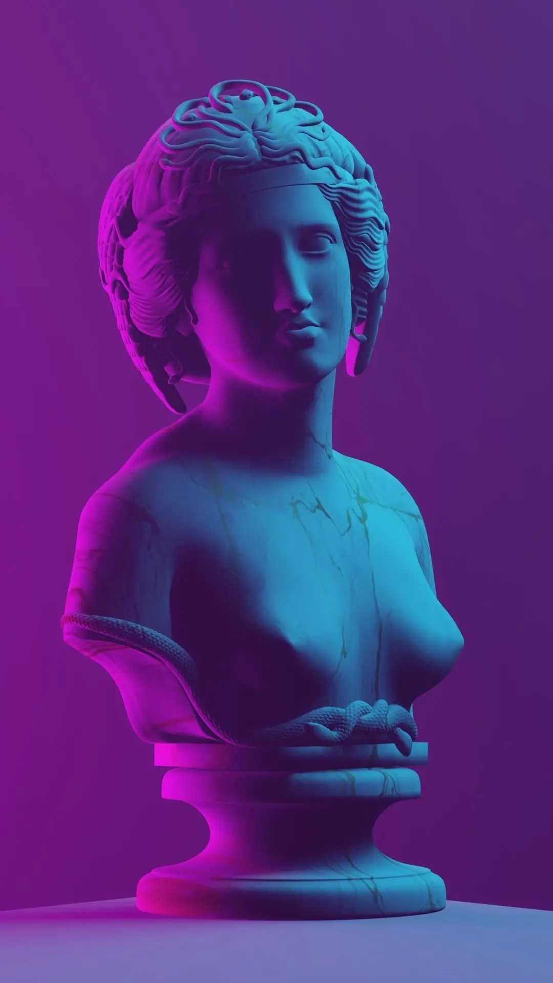 Replica of “Medusa bust” by Harriet Hosmer done in white and gold marble texture.