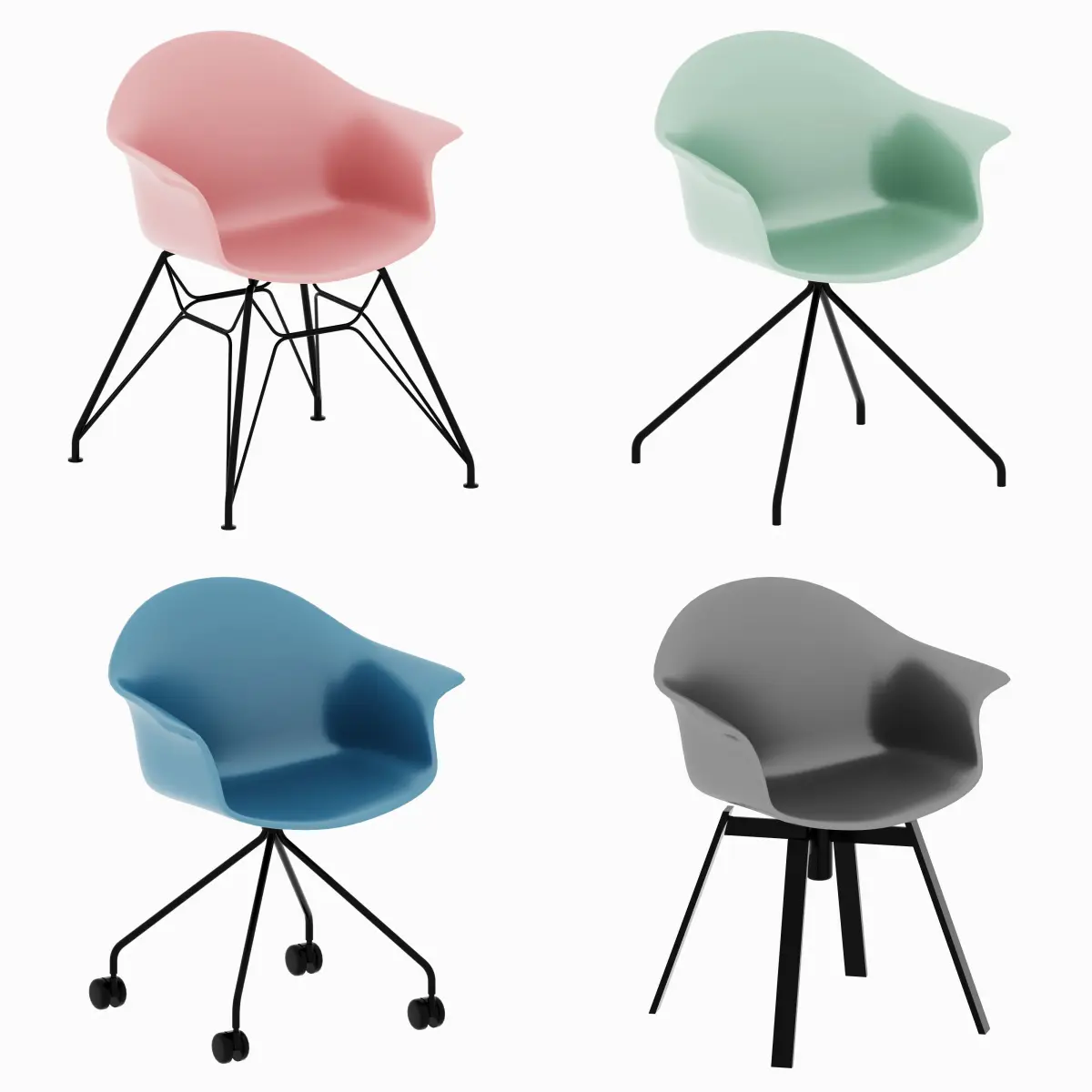 Meet chairs 4 types of legs and office table 3D model