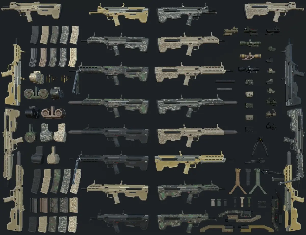 ASR-14: body; selector switch; bolt; dust cover. (Black; Tan; Gold; Digitan; Digicam; Snow) (Tris: 15,074; Verts: 8,117) (4K and 2K texture options)