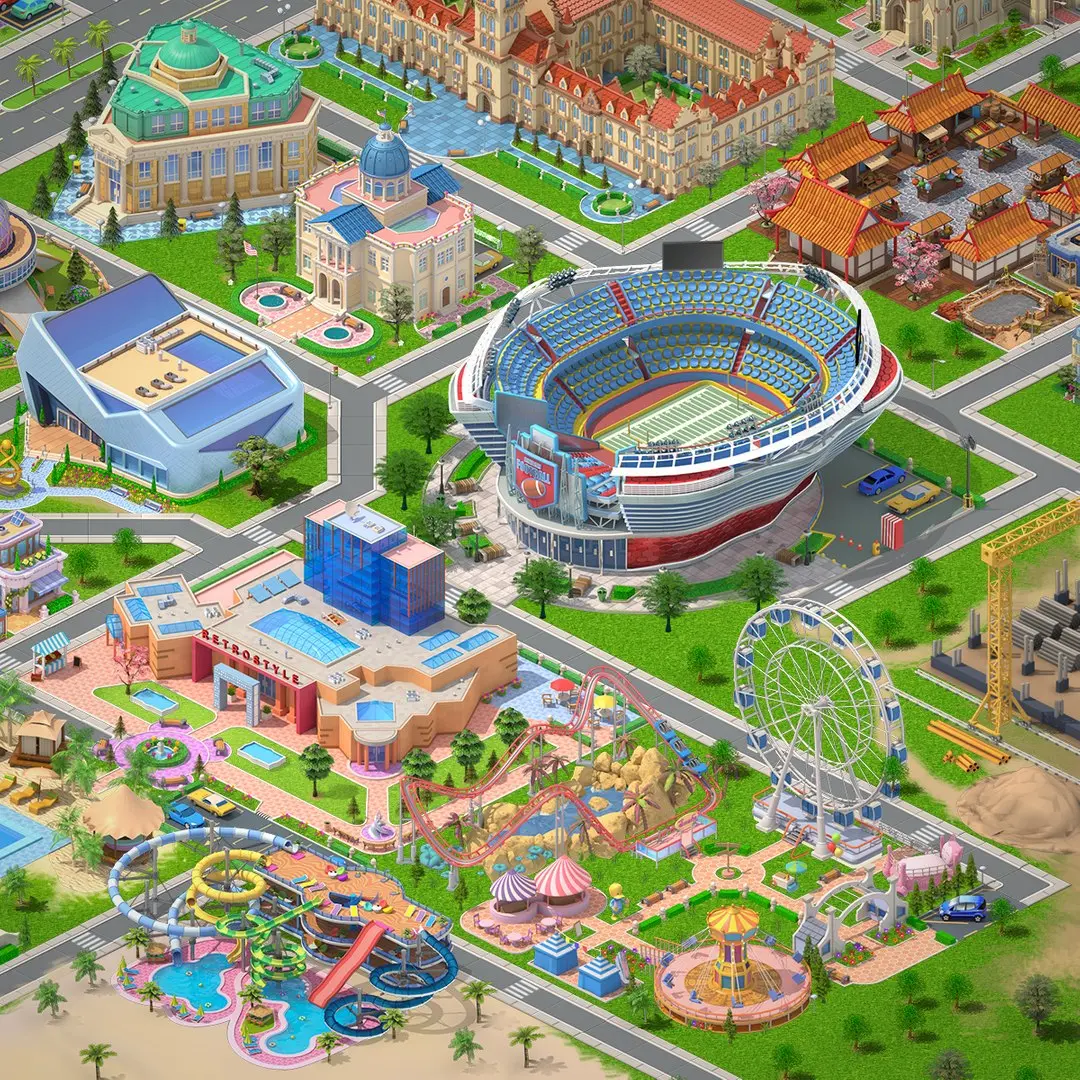 Retropolis City builder of isometric urban buildings sprites contains a variety of highly detailed buildings and props. Interesting shapes, industrial sites, detailed exteriors, and 3 or 4 levels of awesomeness for construction for each building.