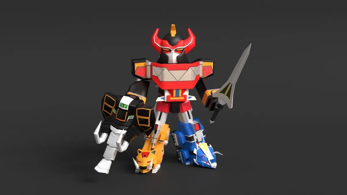 The Megazord (retroactively referred to as the Dino Megazord or the Mighty Morphin' Megazord) is the combination of the five Dinozords: Tyrannosaurus, Mastodon, Triceratops, Sabertooth Tiger, and Pterodactyl. This is the first Megazord to be featured in Power Rangers, but within the chronology of the series may have been preceded by other Zord combinations in the distant past.
