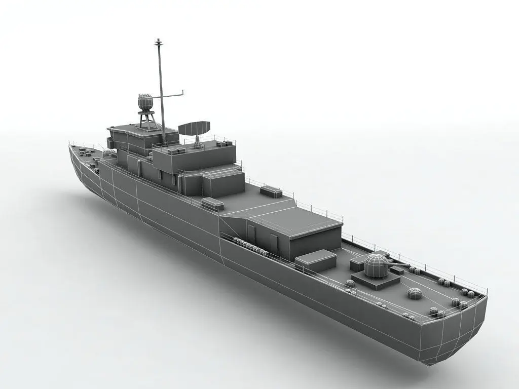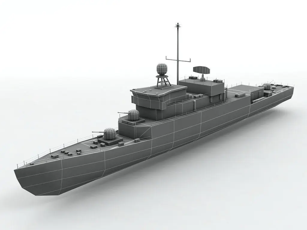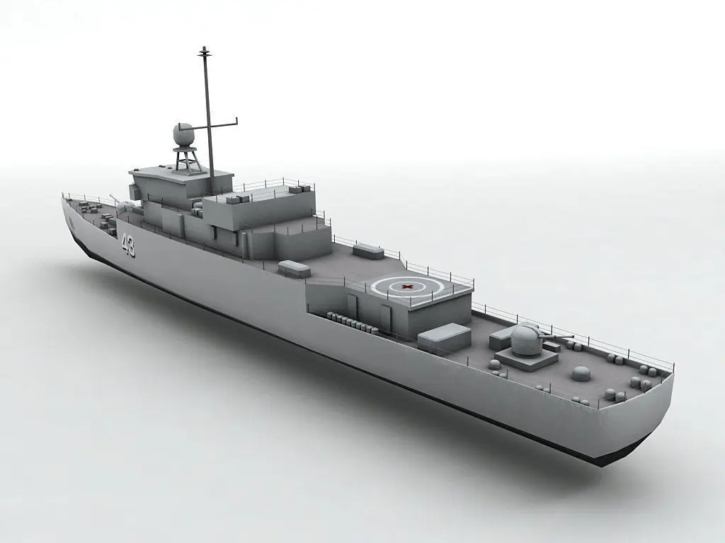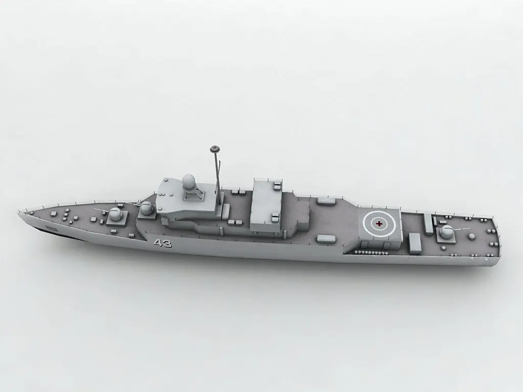 Meko 140 Corvette Military Frigate Ship - Low Detail(Exterior Only) This model was designed to scale from blueprints. Although all the major dimensions are correct (length, height, width, etc.) every exact arc and measurement was not taken into account for engineering purposes. This model is best suited for entertainment and multimedia.
