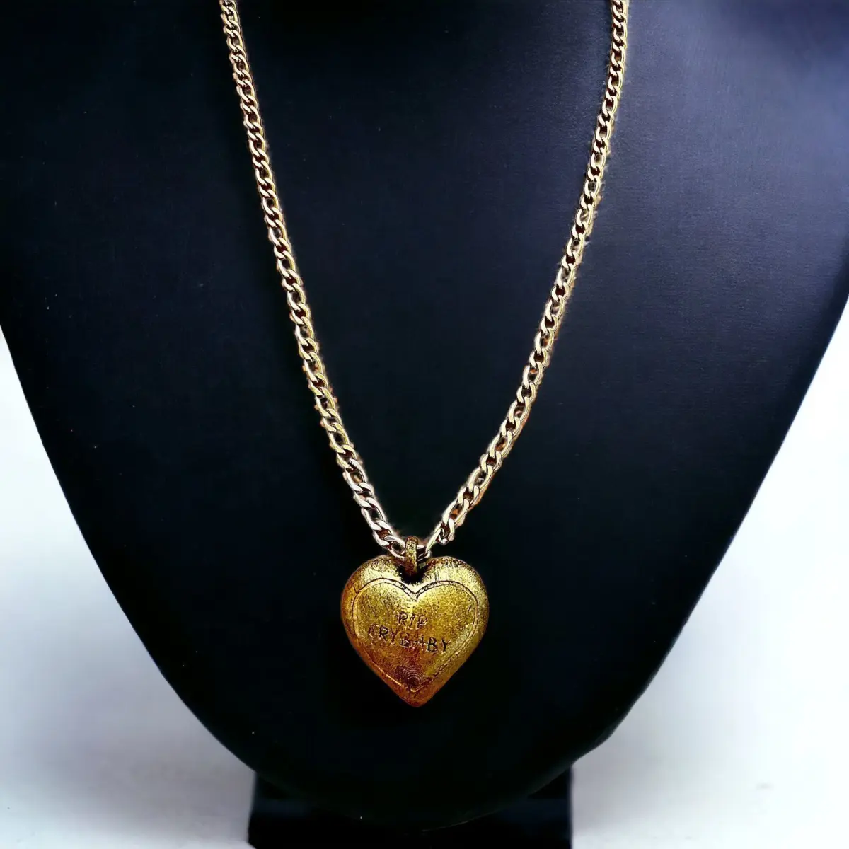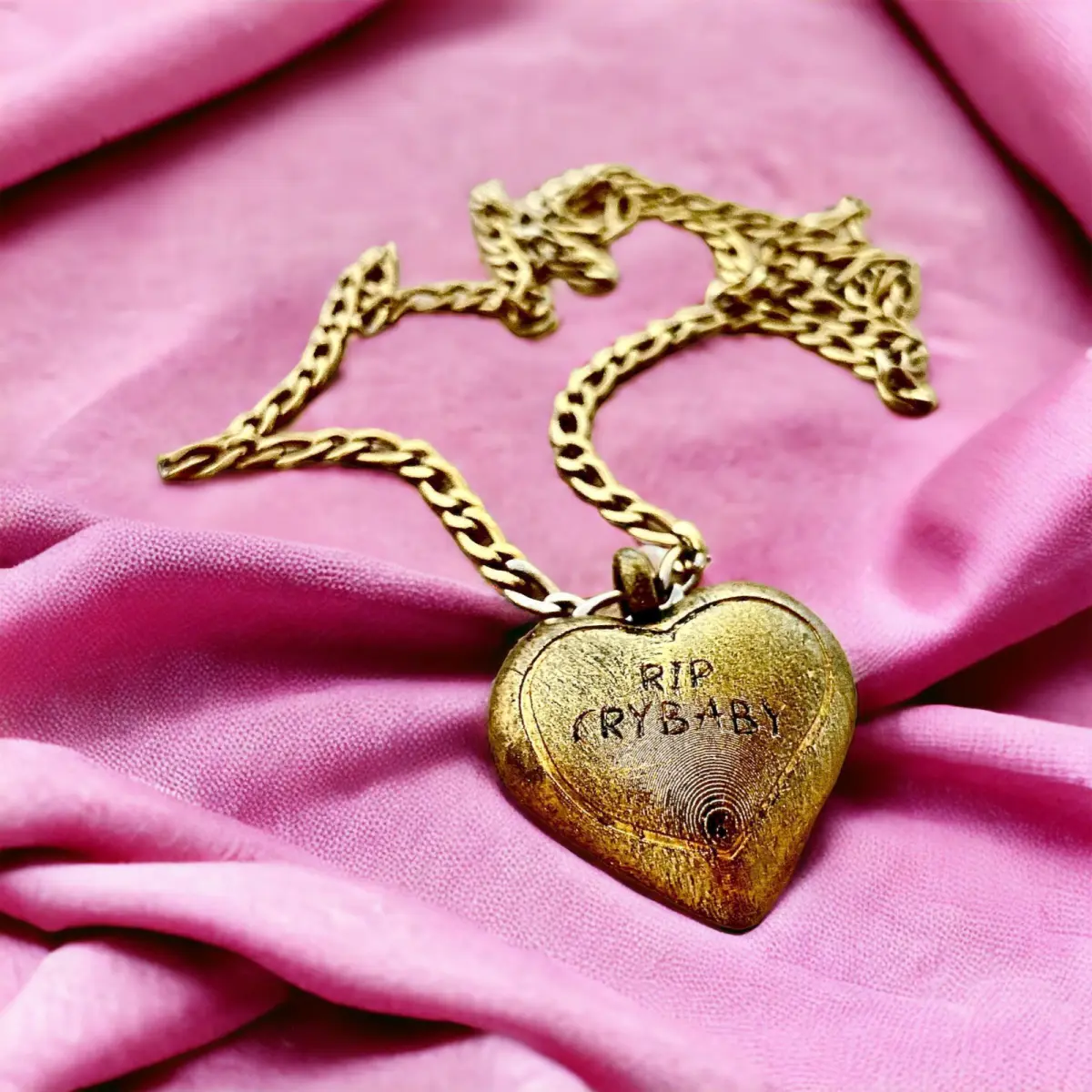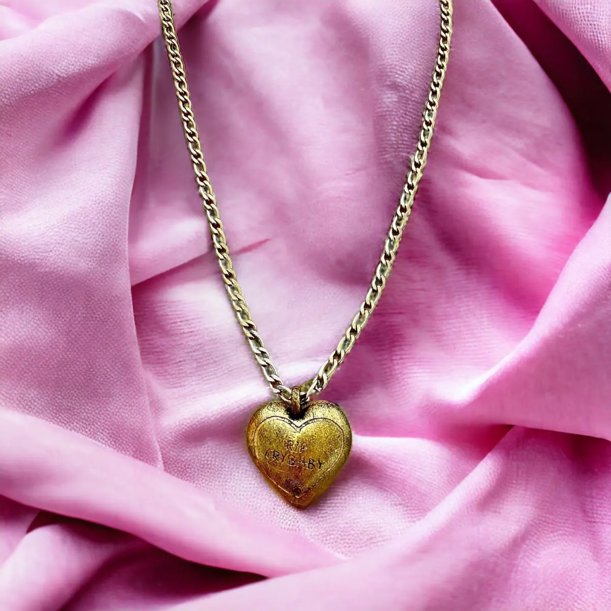 3D model description: This is a heart-shaped pendant with the phrase RIP CRYBABY, inspired by Melanie Martinez's music video.