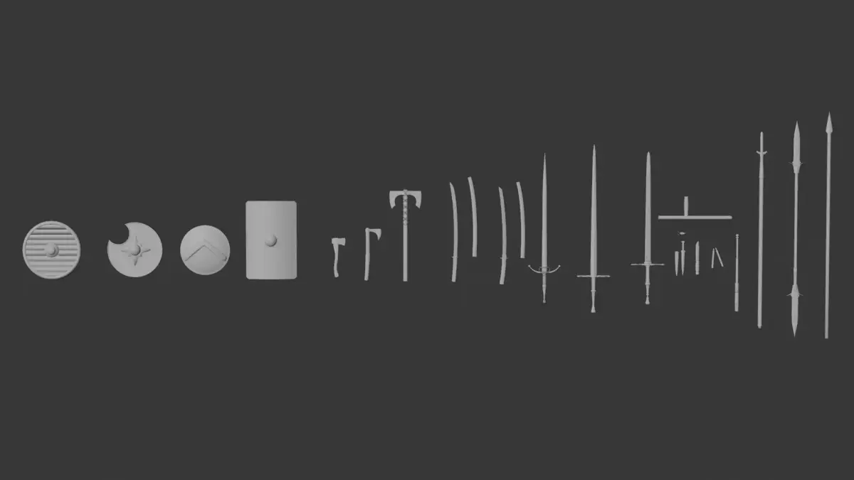 Melee Weapons Asset Pack- Handheld High Definition Bundlethe pack consists of battons, swords, long swords, axes, war axes, shields, spartan, viking, and long war shields, daggers, knives, nun-chucks, and spears, long spears and staffs.The asset is high fidelity making it both game-ready & cinematic ready.The asset is also 3D printable by simply importing the file and exporting it as a .stl and adding it to the slicer of your choice.UV mapping..fbx, .obj, .blend files availableTexture files provided.