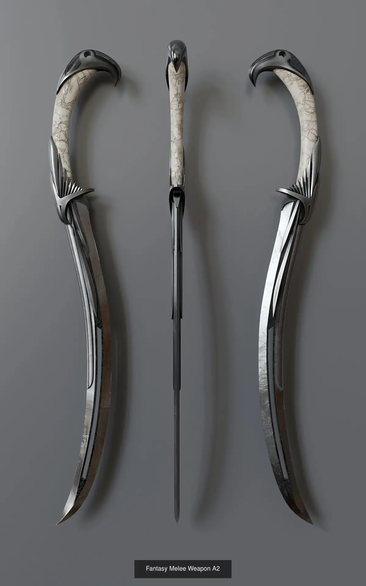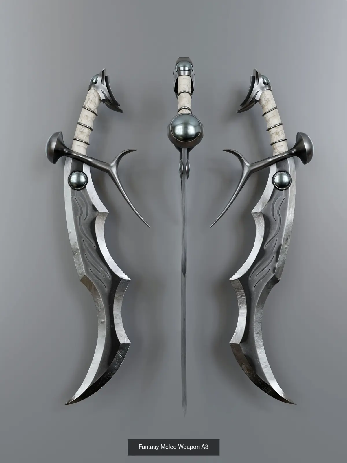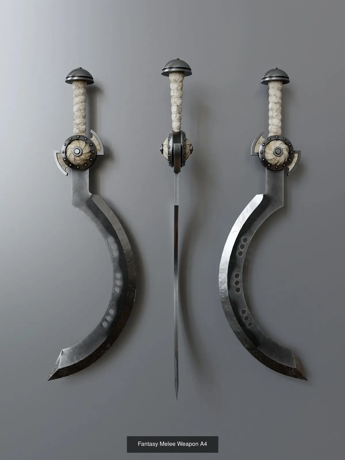 Melee weapons set in fantasy style. Includes 4 items. All textures (res. 4096x4096) were baked in the Substance Painter program and packed in a zip archive.
