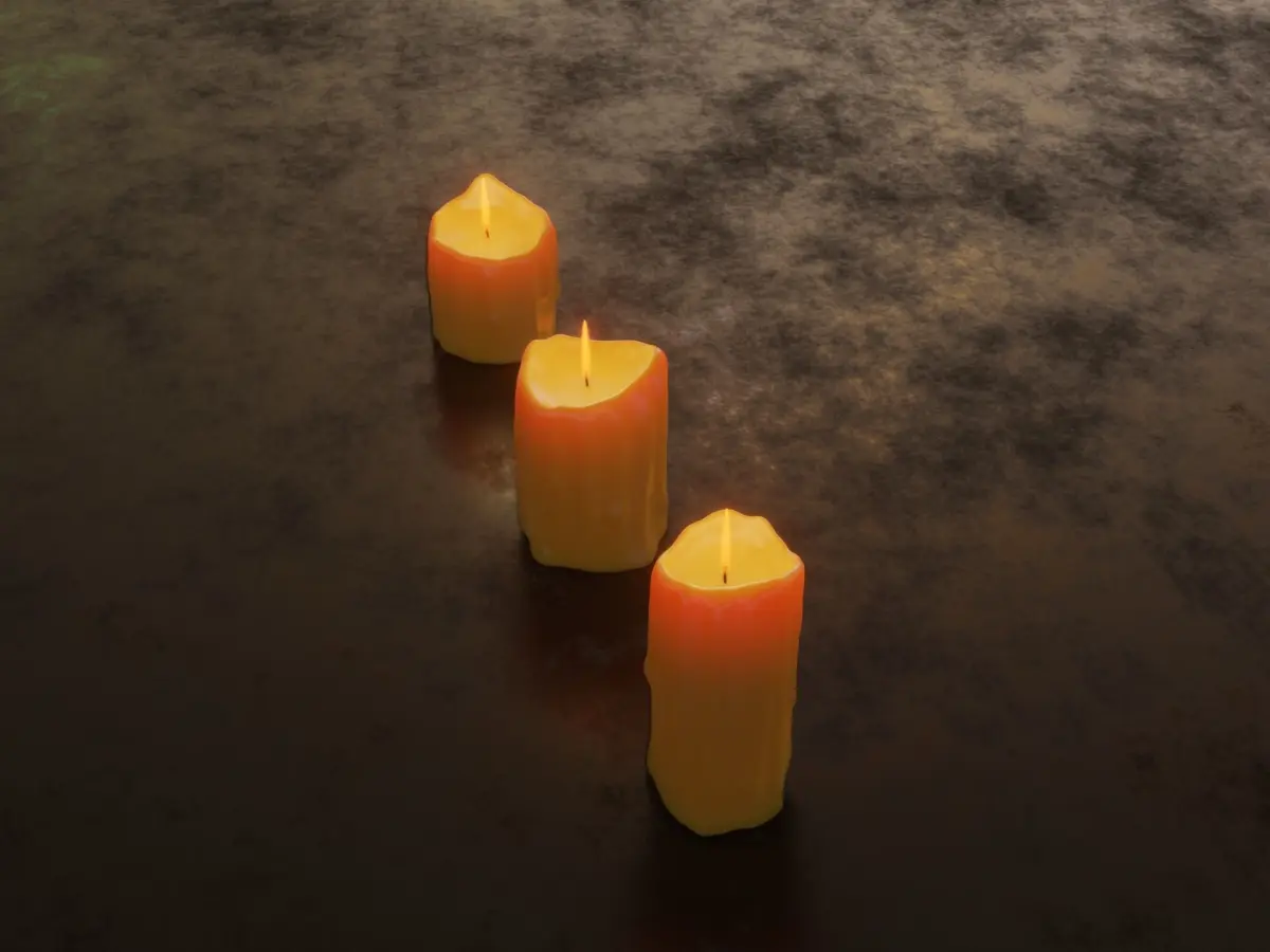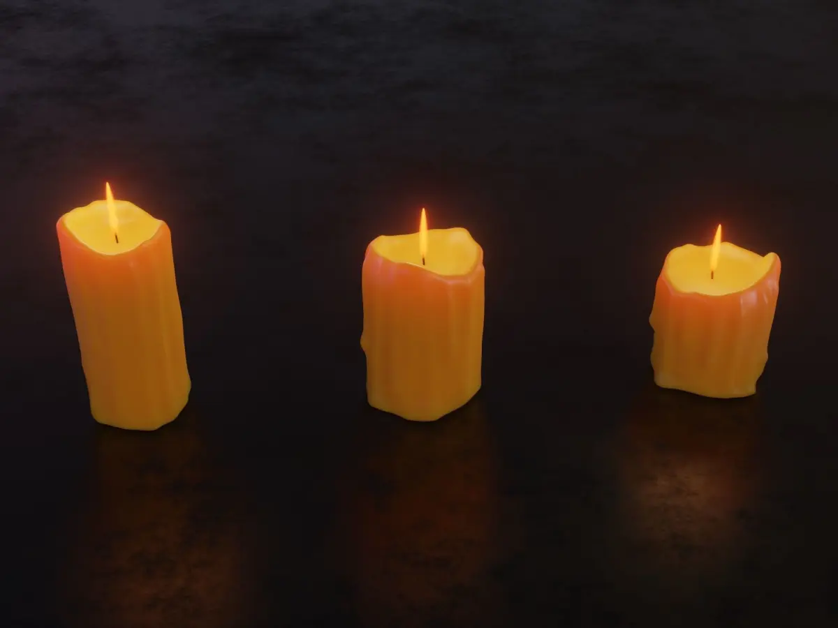 Three Melted Candles 3D is suitable for use in film, advertising, design visualization, etc.