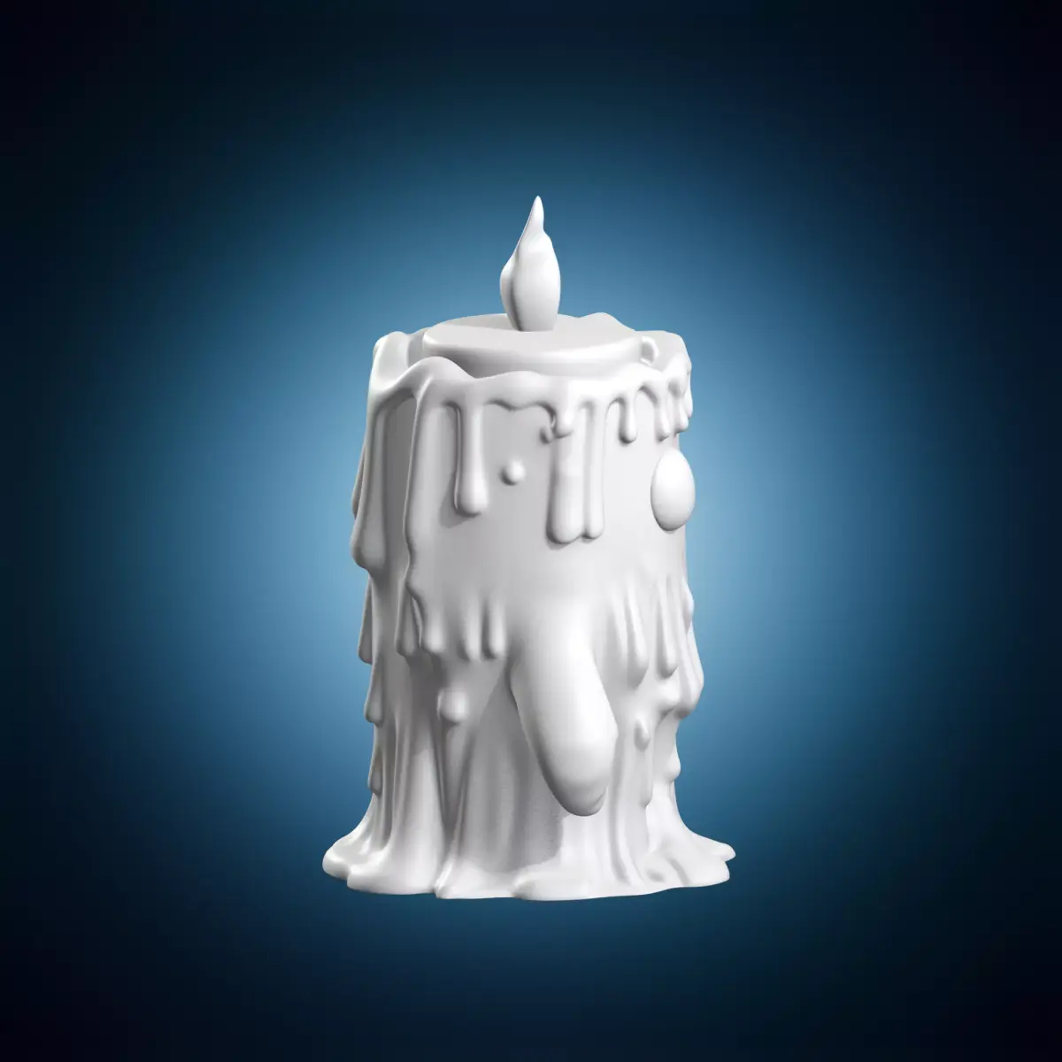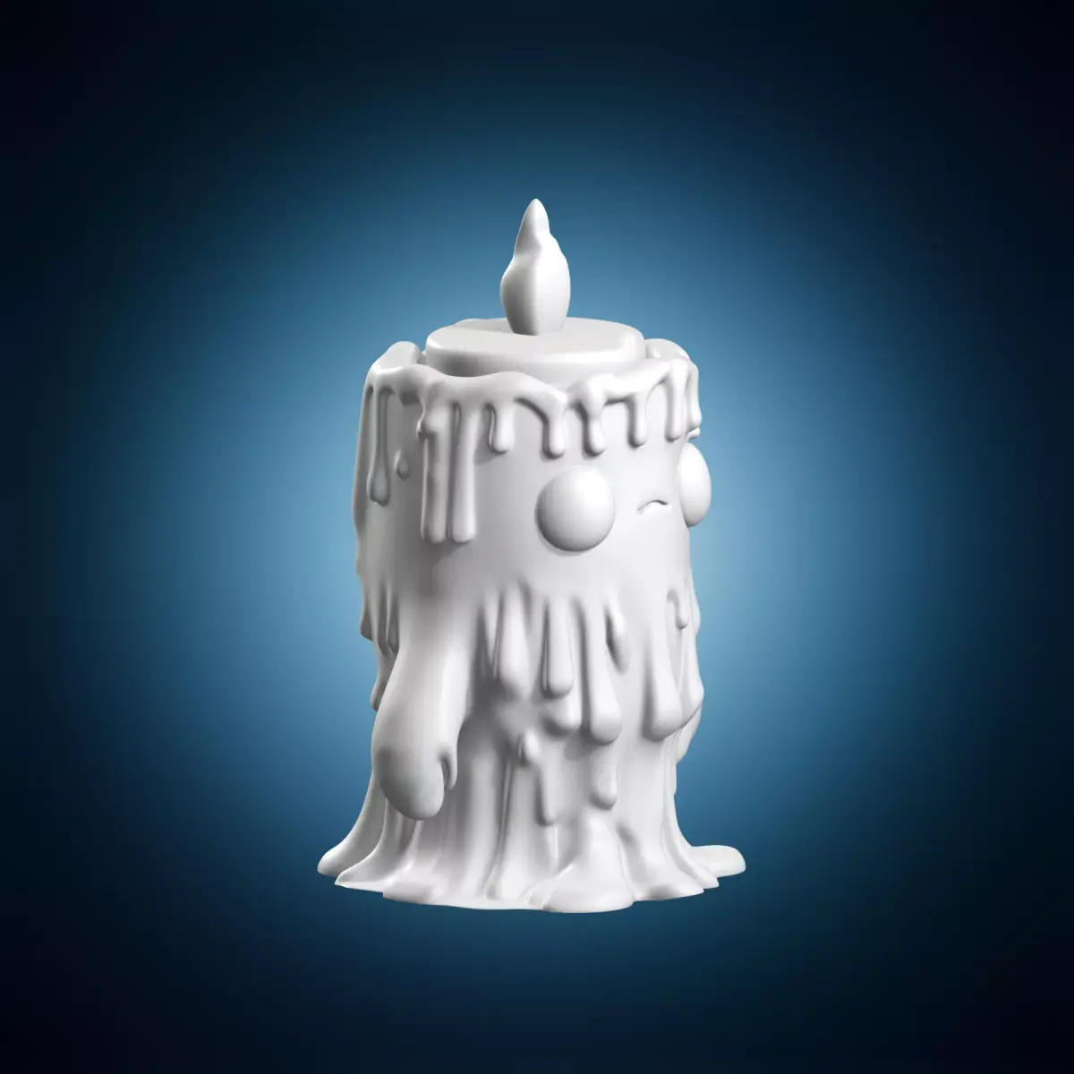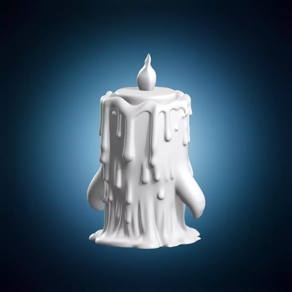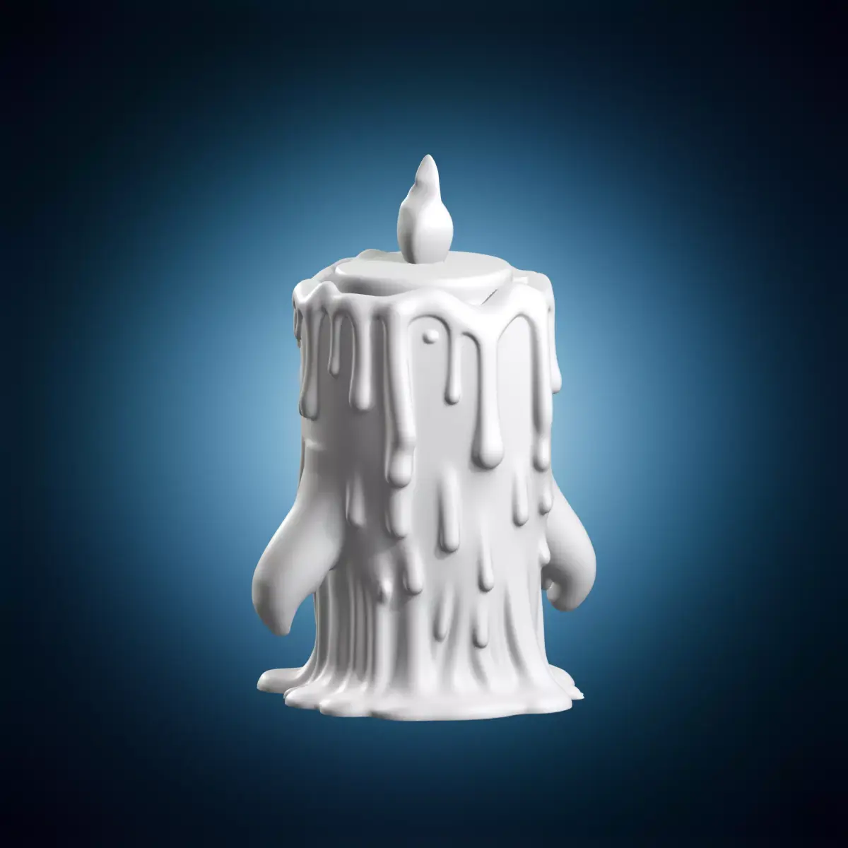 A 3D model of a melting candle with a ghost character toy inside, created in a surreal and dreamlike environment. The melting wax is depicted in a soft, ethereal light, while the ghostly figure is shown in a state of playful interaction. This model could be used for various purposes such as animation, simulation, or artistic expression.