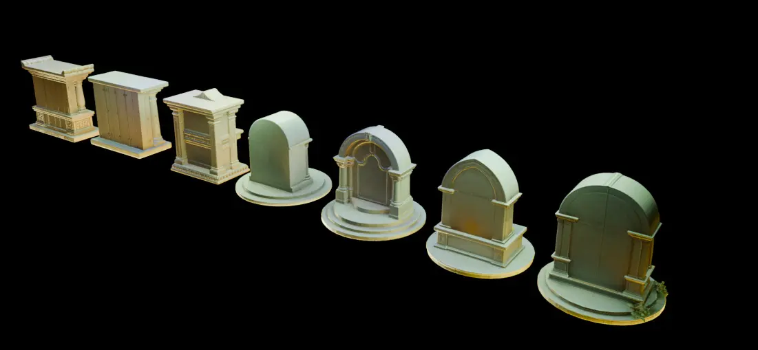 A collection of 7 highly detailed memorial altars. Perfect for enhancing your virtual environments with a touch of reverence. This asset pack features seven unique altars, each with intricate high-poly sculpts, ensuring a rich, lifelike appearance suitable for a variety of applications, including games, films, and 3D visualization projects.
