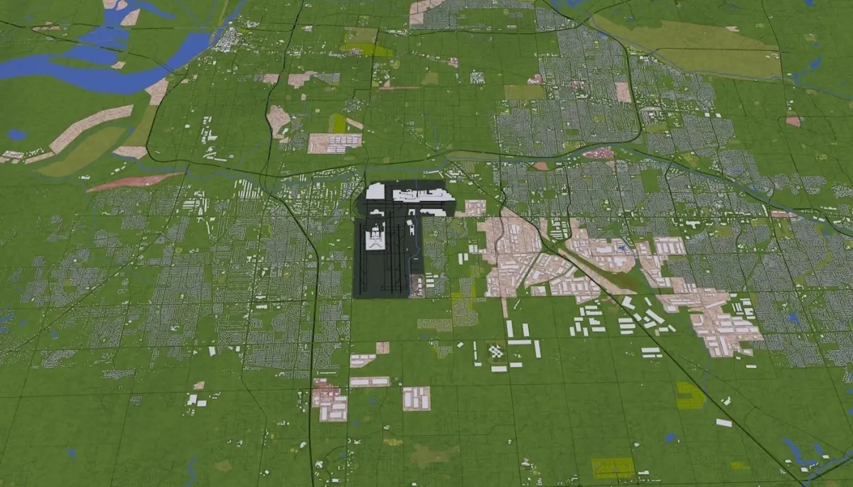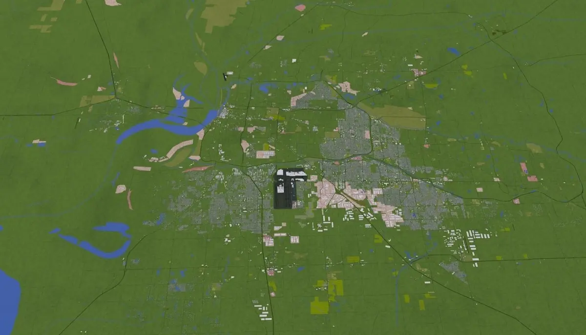 3D representation of Memphis City USA using 2019 map data. Roads, railway, land, water, buildings are made using real world data. Buildings are accurately placed and resembles the real world object up to some extend. Please note that random buildings (varying height) are added to those area where real world data is not available.