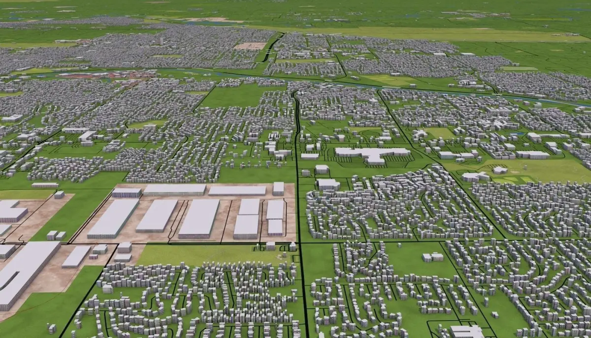 Clean heirarchy- Proper grouping according to the type of real world objects. Properly named objects and materials. Clean Flat UV map- Properly unwrapped UV for most of the objects. Some objects may have cubic mapping applied. Buildings are extracted from real world data. There are random buildings added to some areas where real world data is partially available (missing height details).