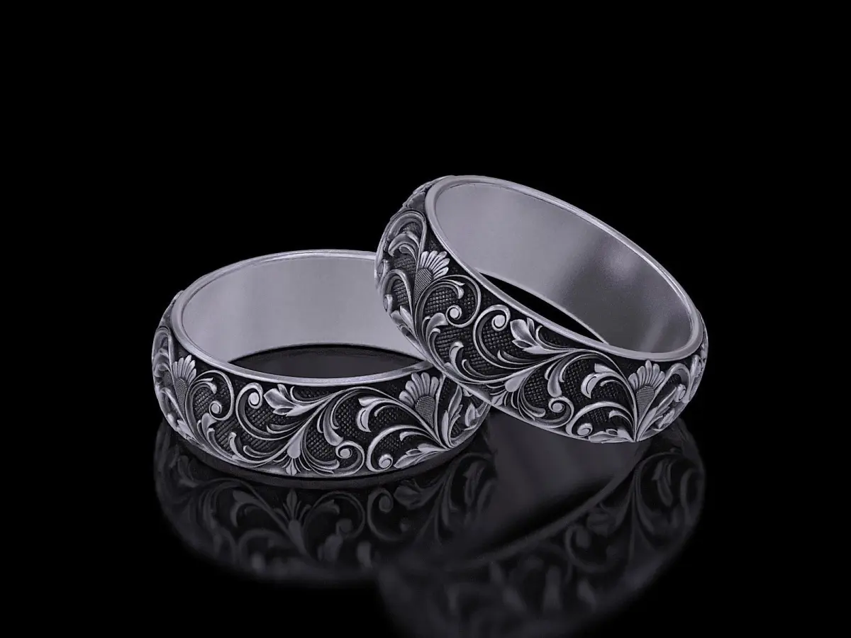 Exclusively designed and extremely beautiful Antique floral carving eternity band ring to admire your artistic mindset. The royal carvings are the soul of this eternity band. It suits the people who are creative and strongly believe in their roots and culture. Its a must have ring for your exclusive jewelry collection. Both solid and hollowed versions are included in files. Suitable for both men and women. Ring size= 19.74 mm. Ring width = 7.5 mm, height = 2.26 mm. Ring weight is silver = 8.28 grms approx. Ring weight is 18k gold = 12.42 grms approx. Actual weight will be less than estimated weight.